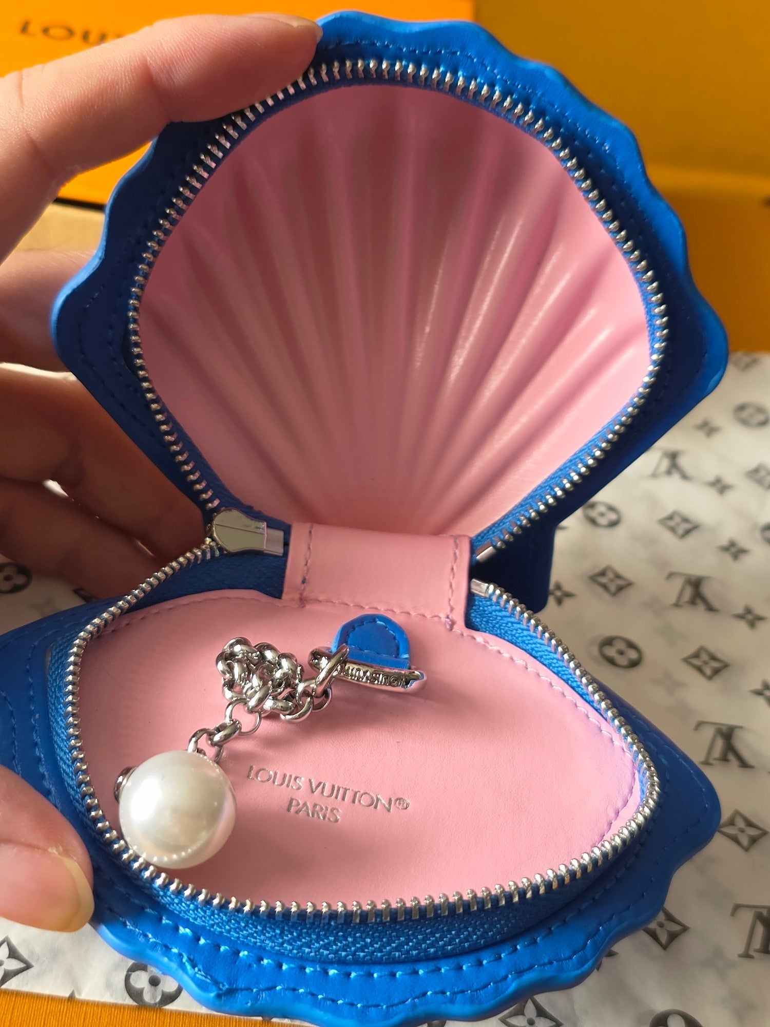 LV Alma Bag Charm Blue mix Beige Cowhide Canvas