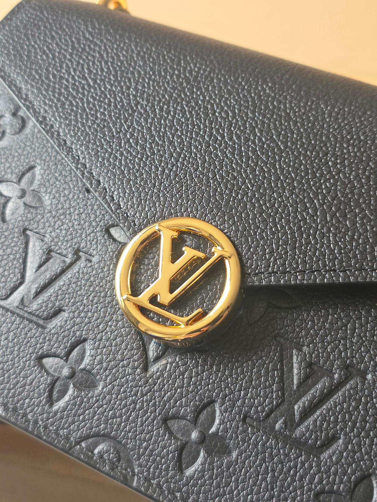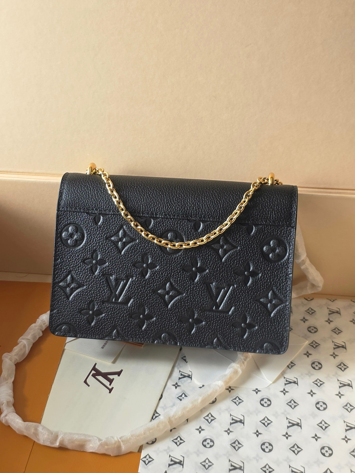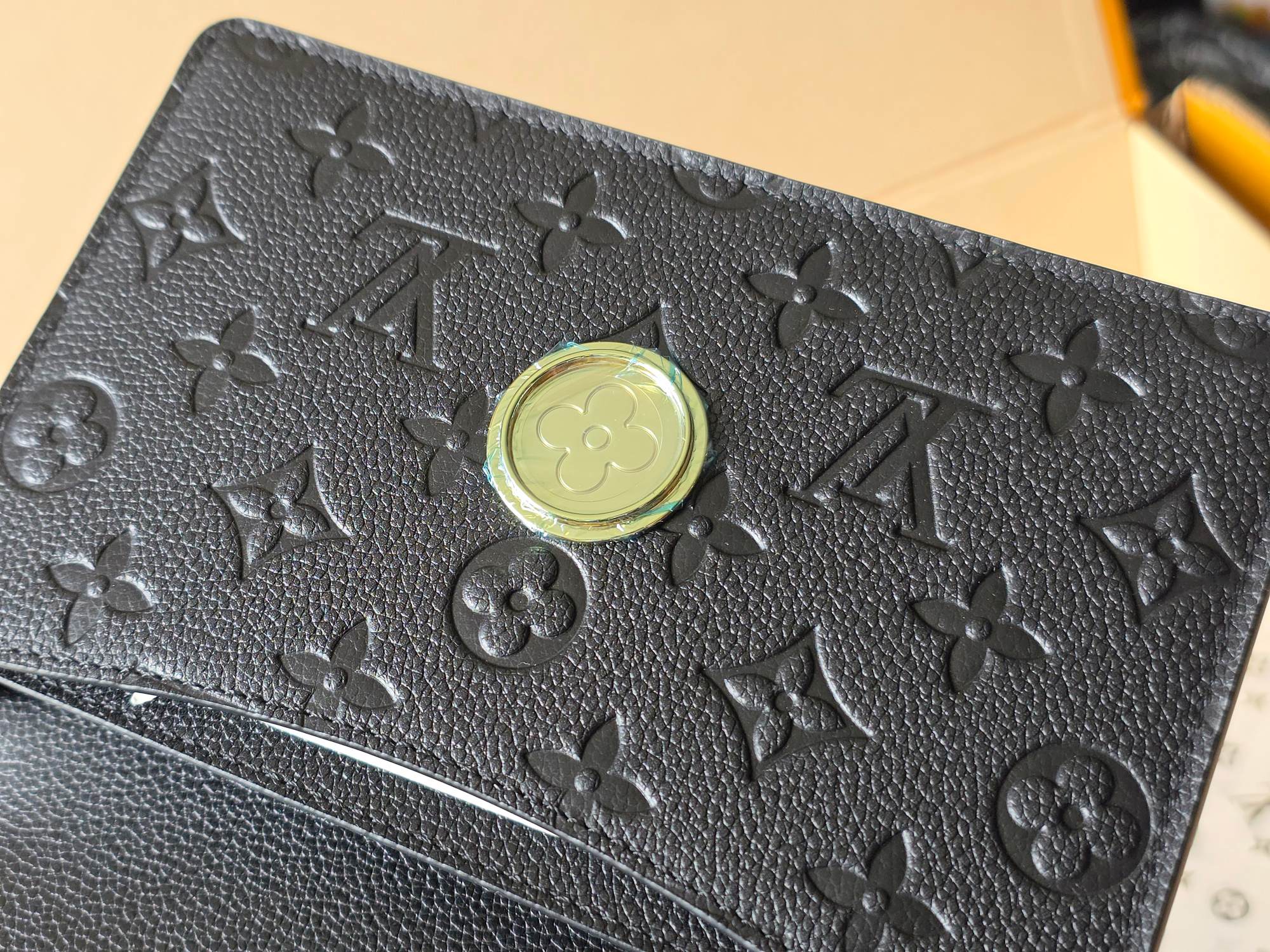 LV Wallet On Chain Rosy Black Embossed Grained Cowhide Leather