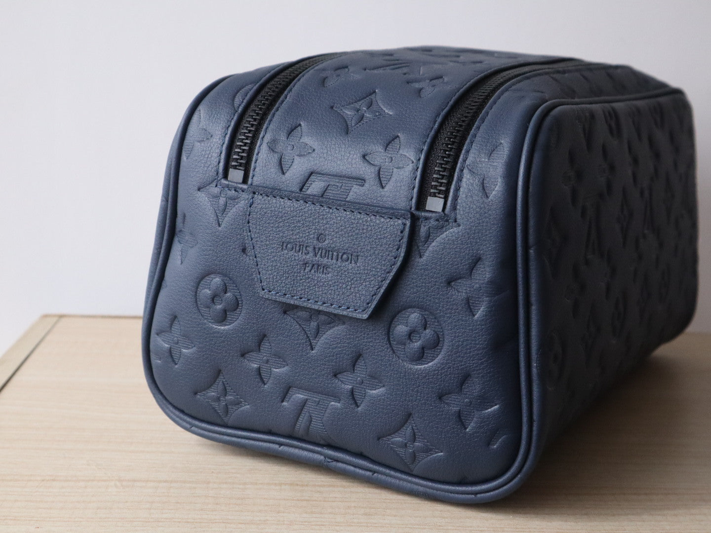 LV Dopp Kit Toiletry Bag Navy Blue Monogram Calfskin & Cowhide247596