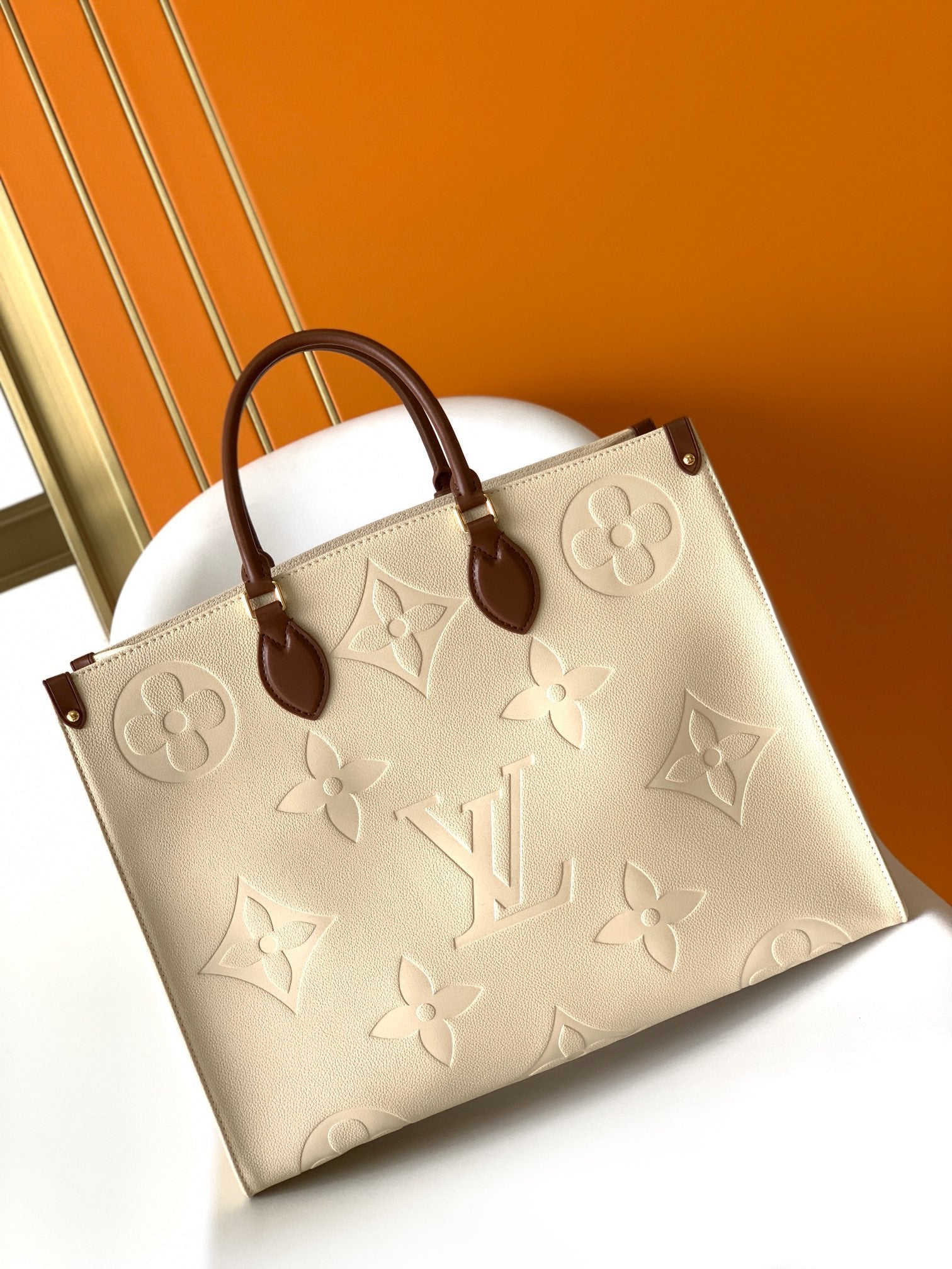 NEVERFULL MM 32 KHAKI CREAM MONOGRAM EMPREINTE LEATHER