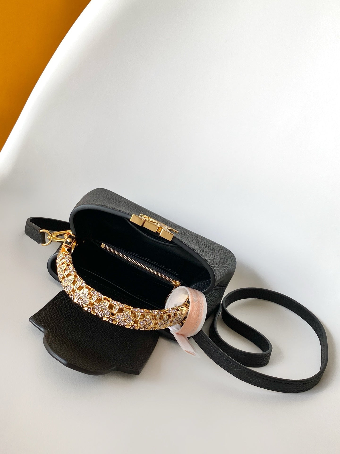 LV Capucines Mini Bedazzled Flower Handle Black Taurillon leather