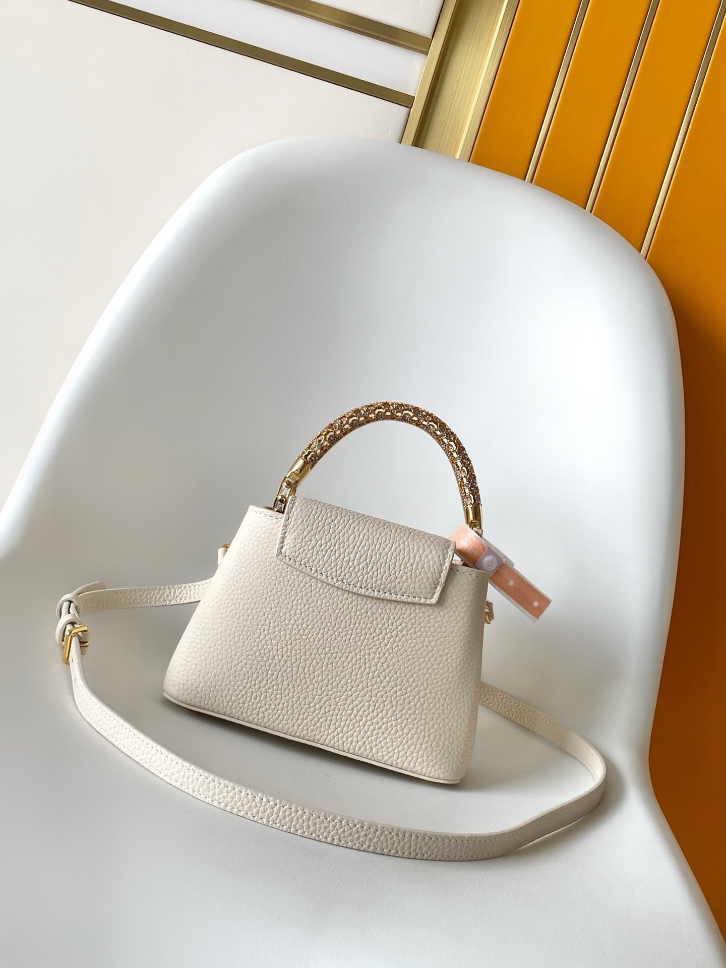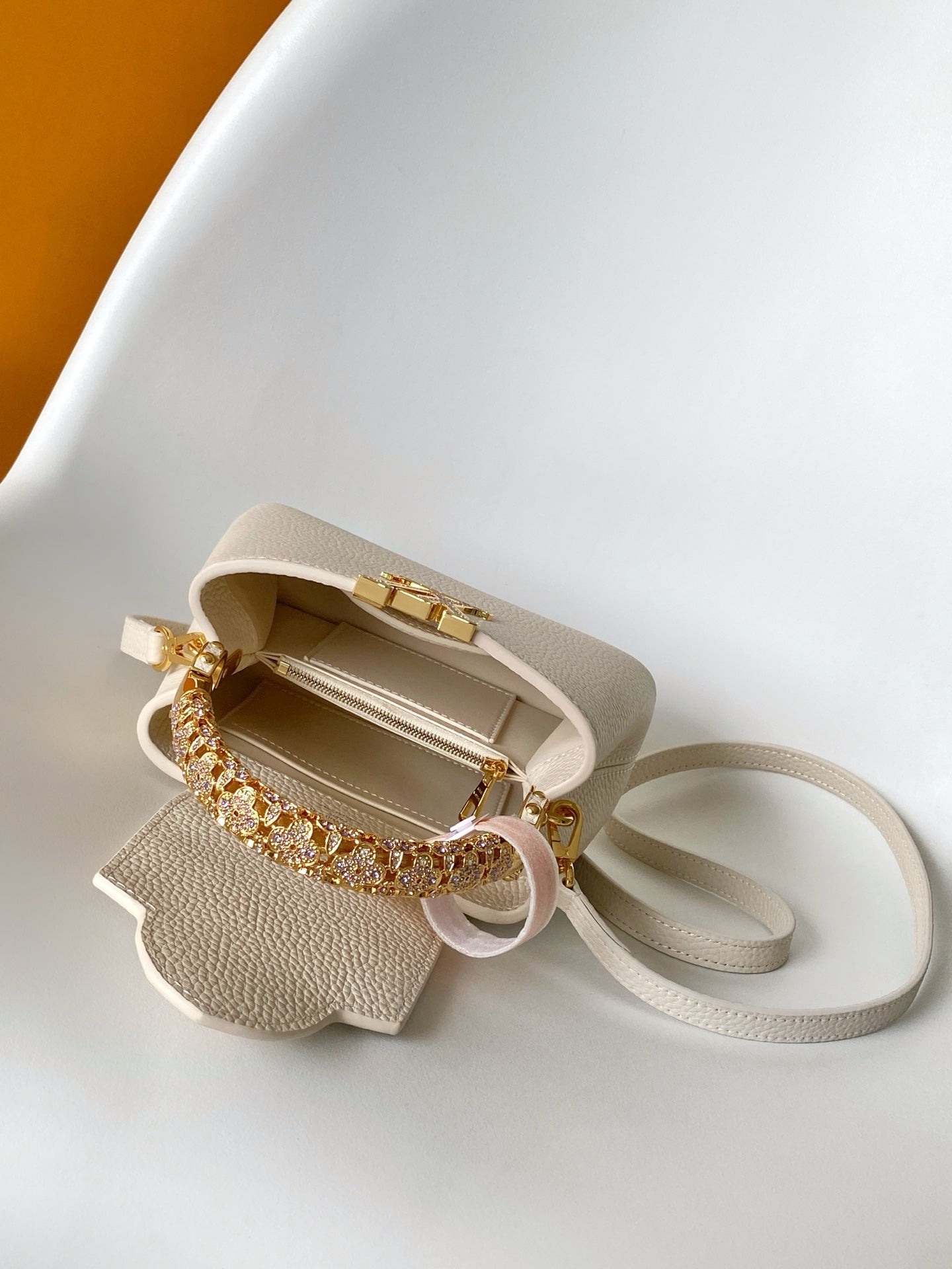 LV Capucines Mini Bedazzled Flower Handle Off White Taurillon leather