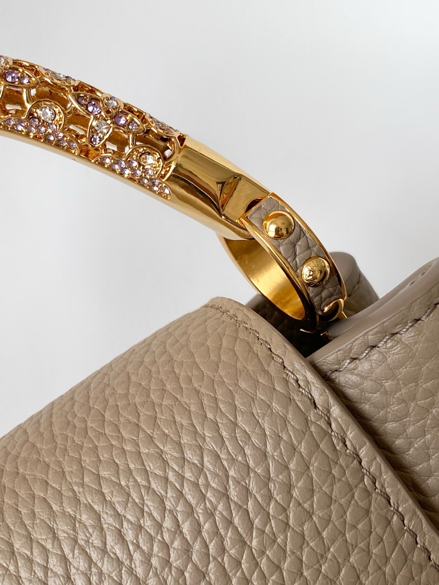 LV Capucines Mini Bedazzled Flower Handle Taupe Taurillon leather