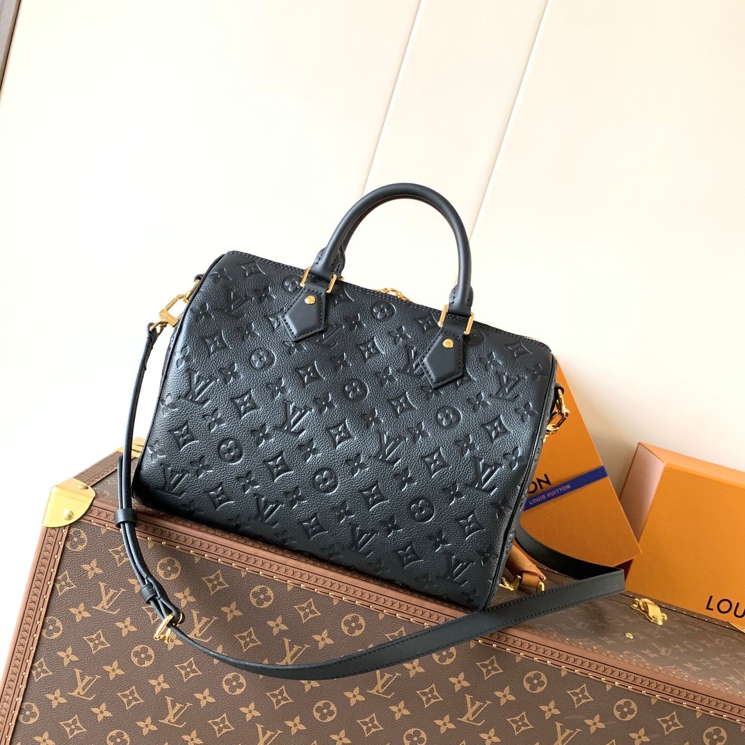 LV M47186 Speedy Soft 30 Black Monogram Empreinte Leather