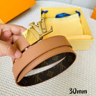 LV Initiales 30mm Reversible Belt Gold Rotating Buckle Tan Brown Leather