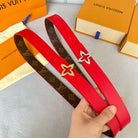LV MINI FLOWERGRAM 30MM REVERSIBLE BELT IN CHERRY RED CALFSKIN GOLD HARDWARE