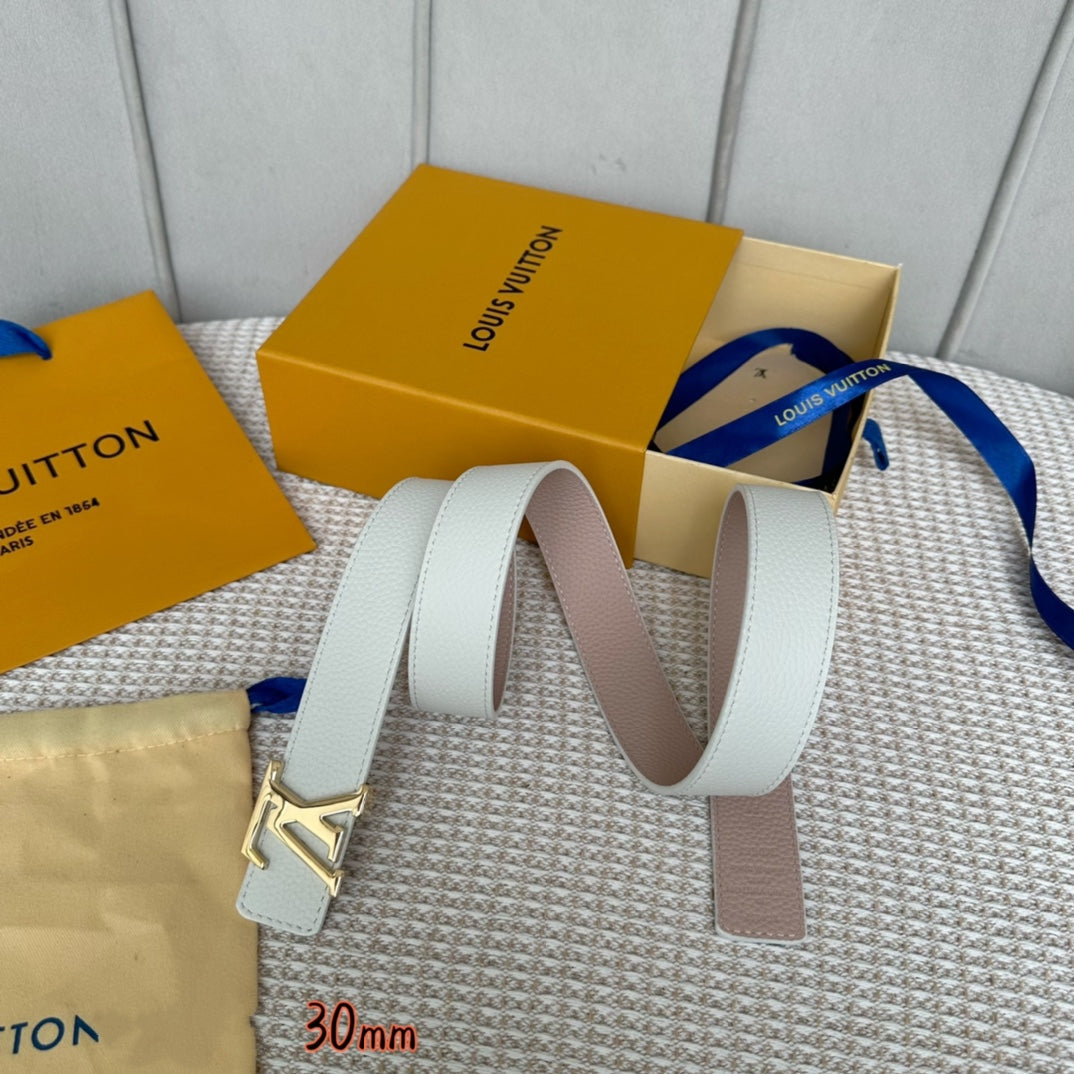 LV Bloom 30mm Belt Gold Buckle White Brown Leather
