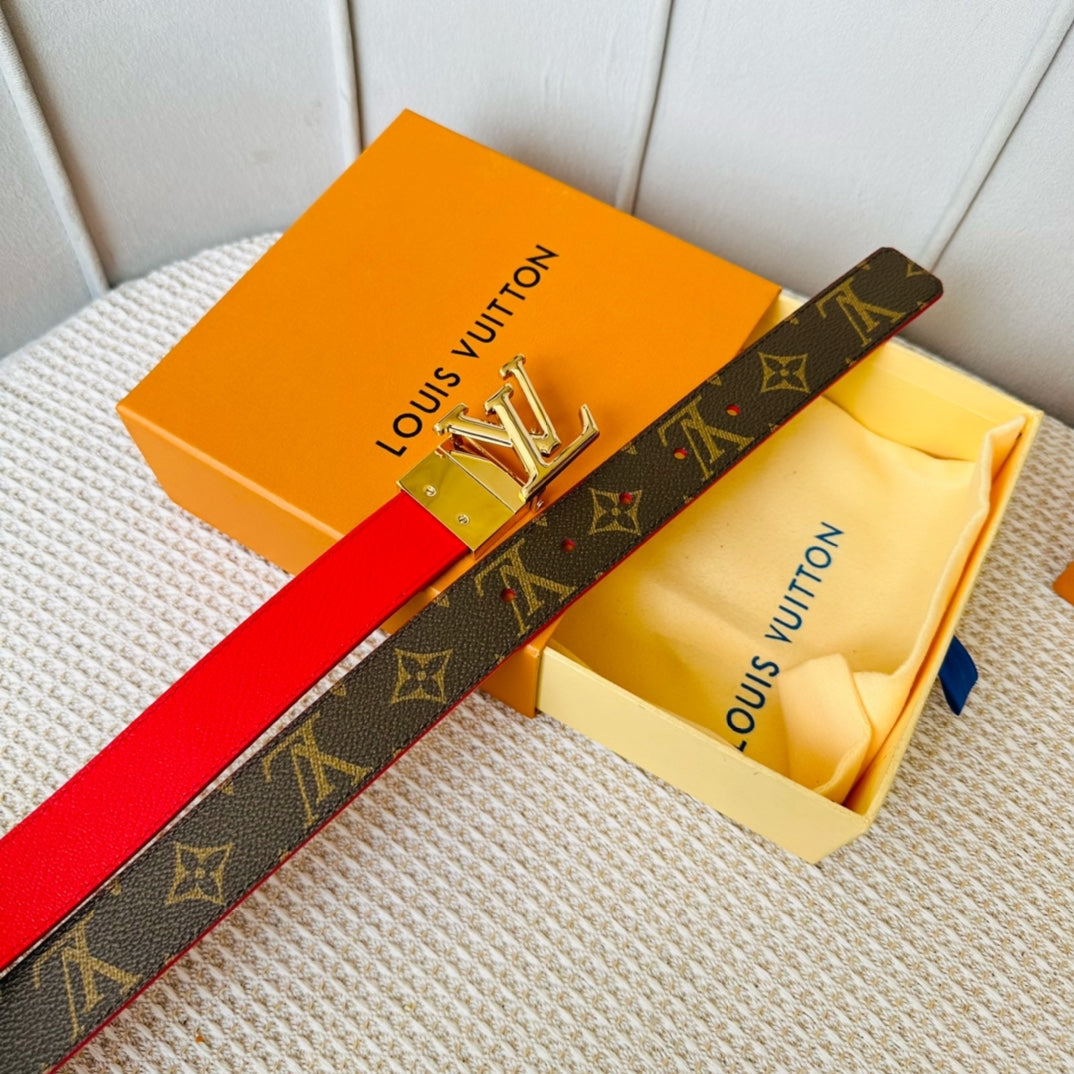 LV Bloom 30mm Belt Gold Buckle Red Brown Leather