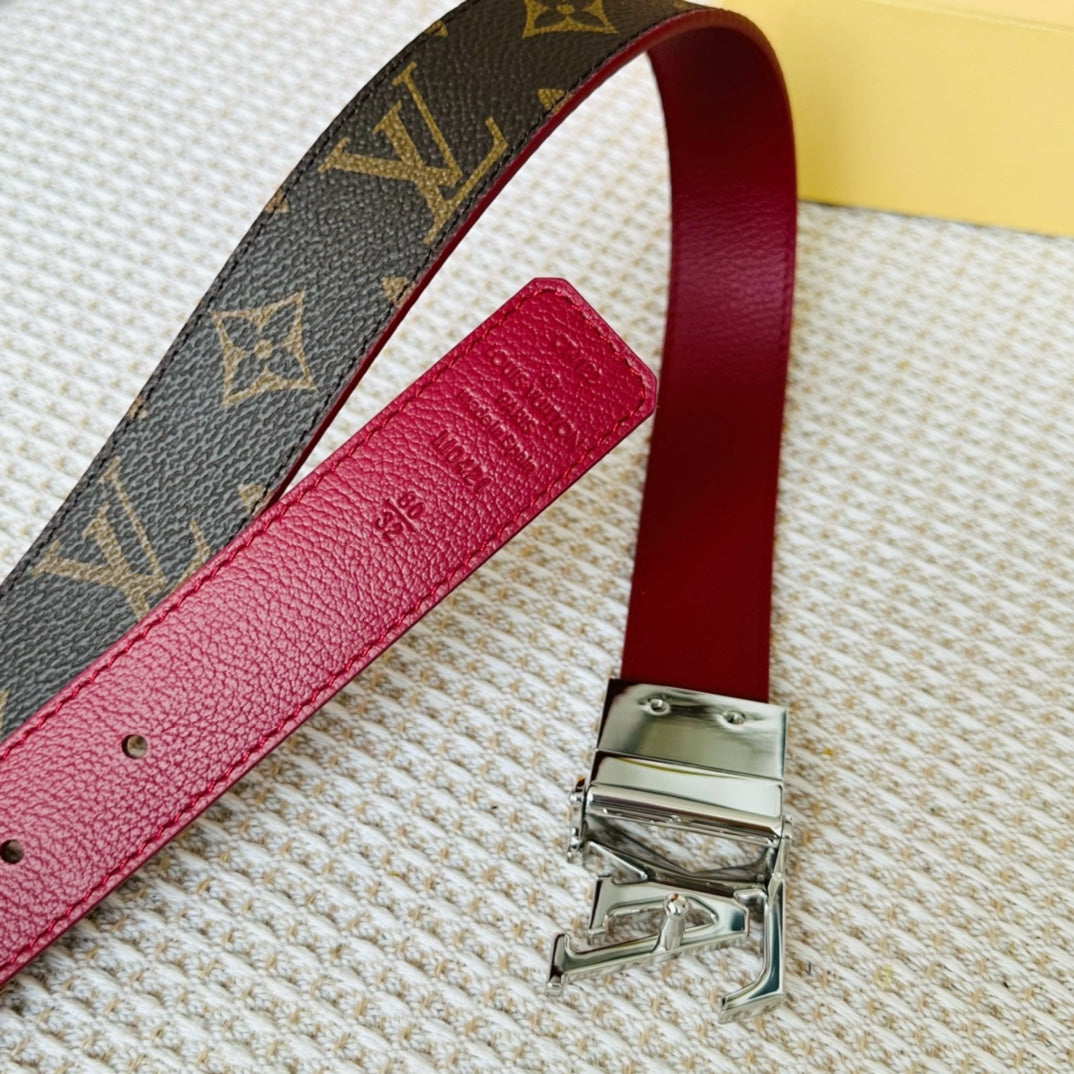 Pretty LV 30mm Reversible Belt Pink Gold Buckle Pink Brown Leather