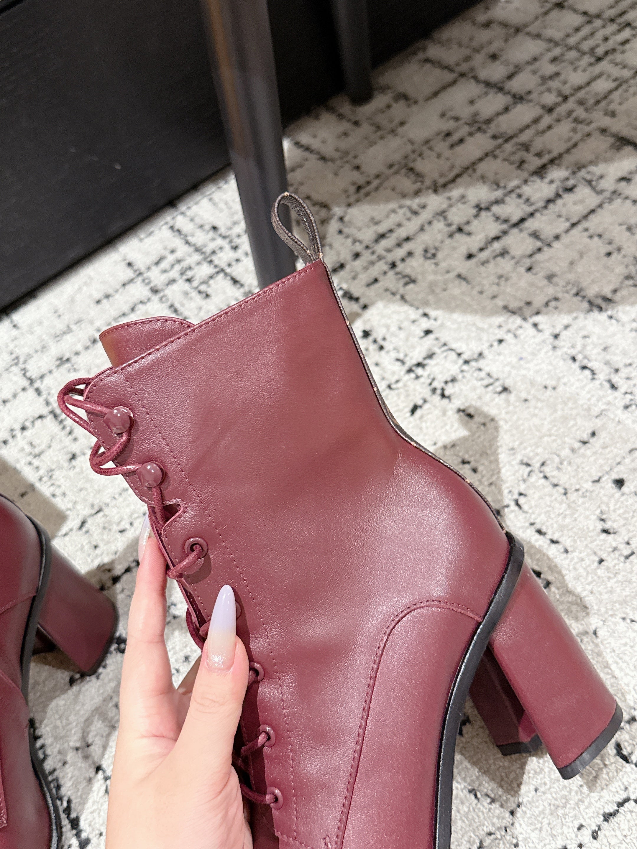 LV Berlin Boots 85mm Ecru Burgundy Smooth Calfskin 514456