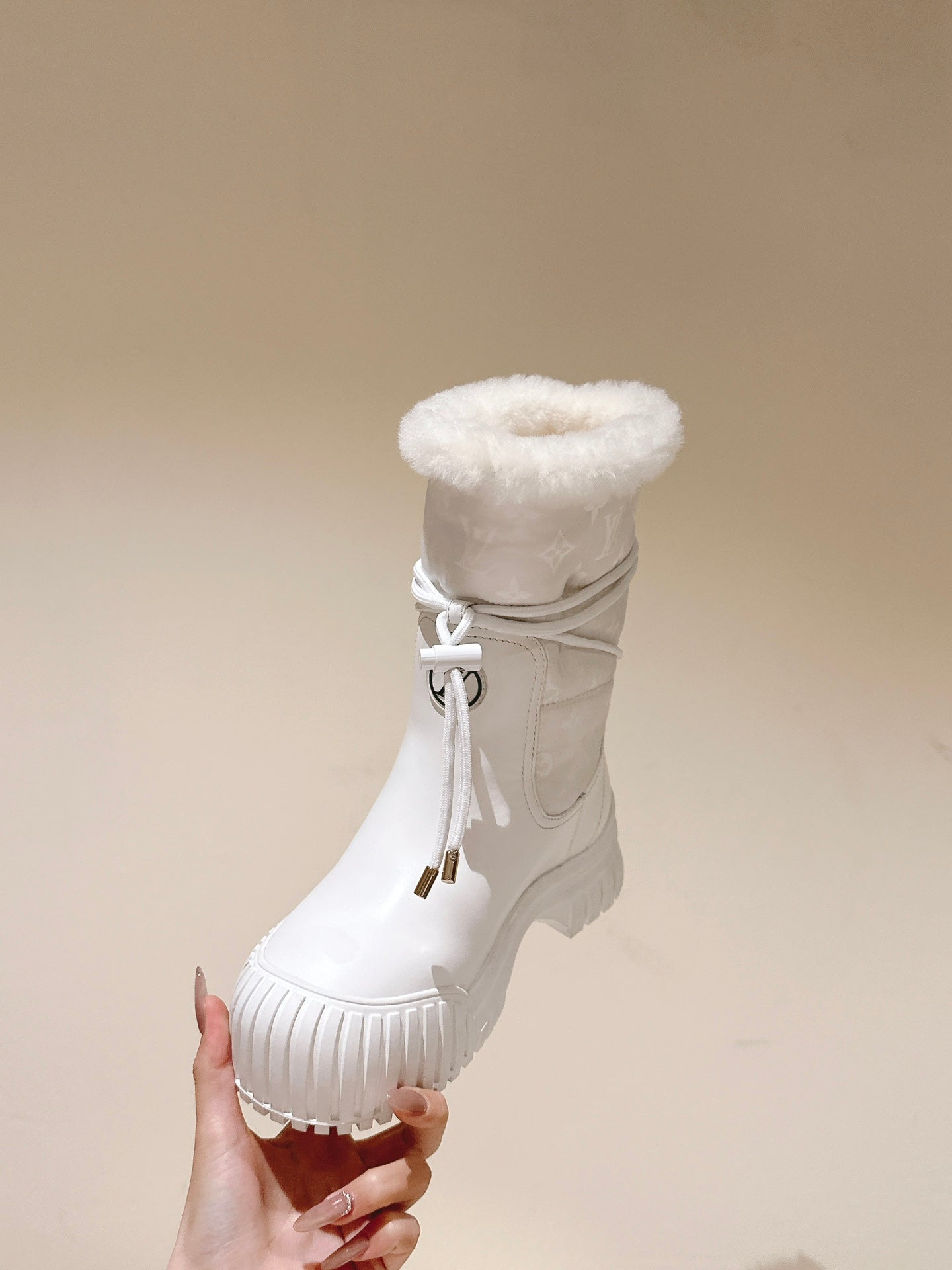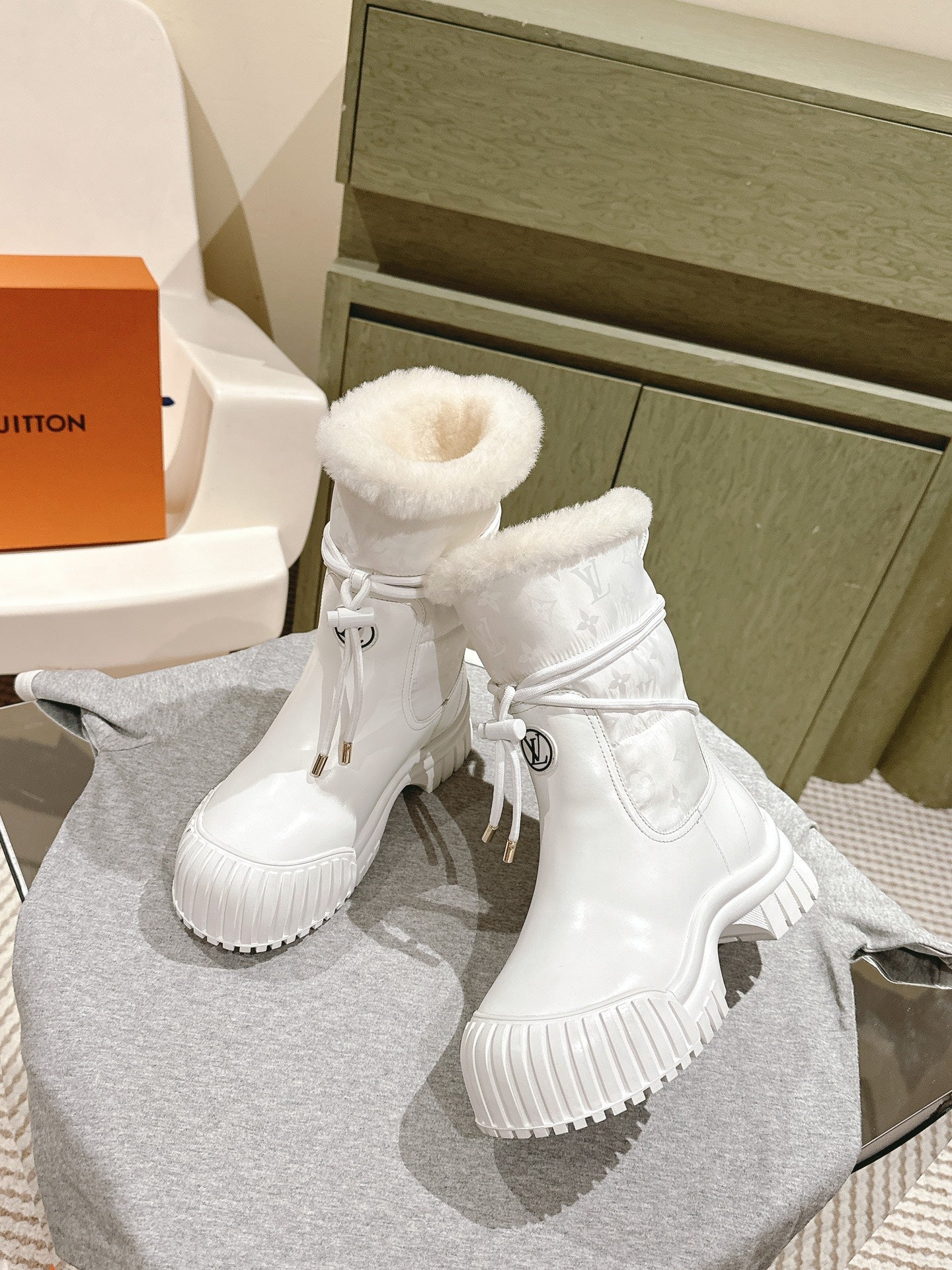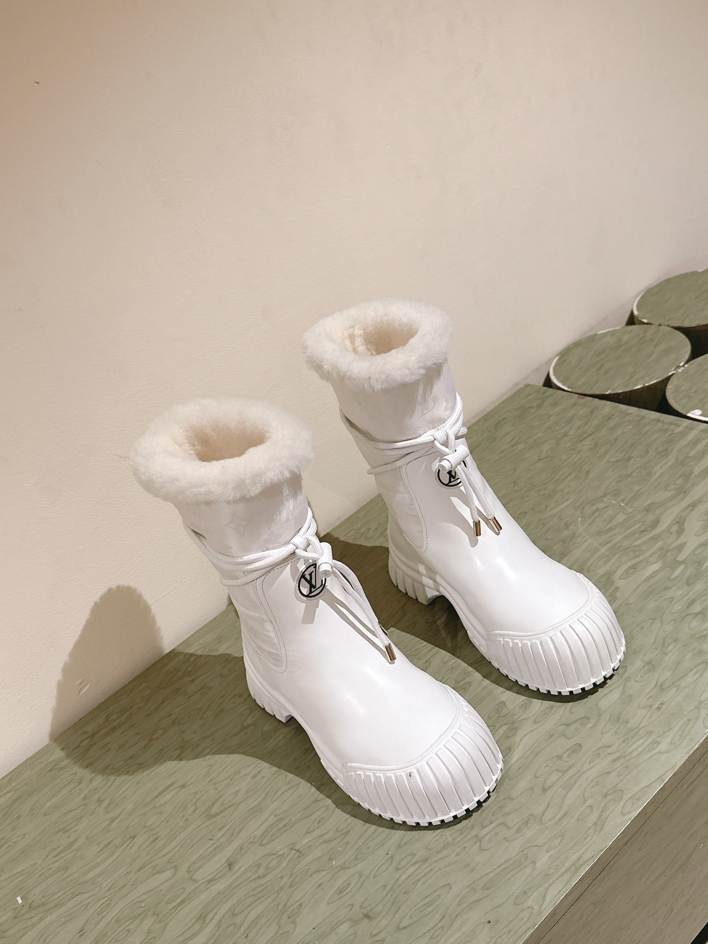 LV Ruby Flat Ankle Boots 50mm White Shearing Cowhide 449884