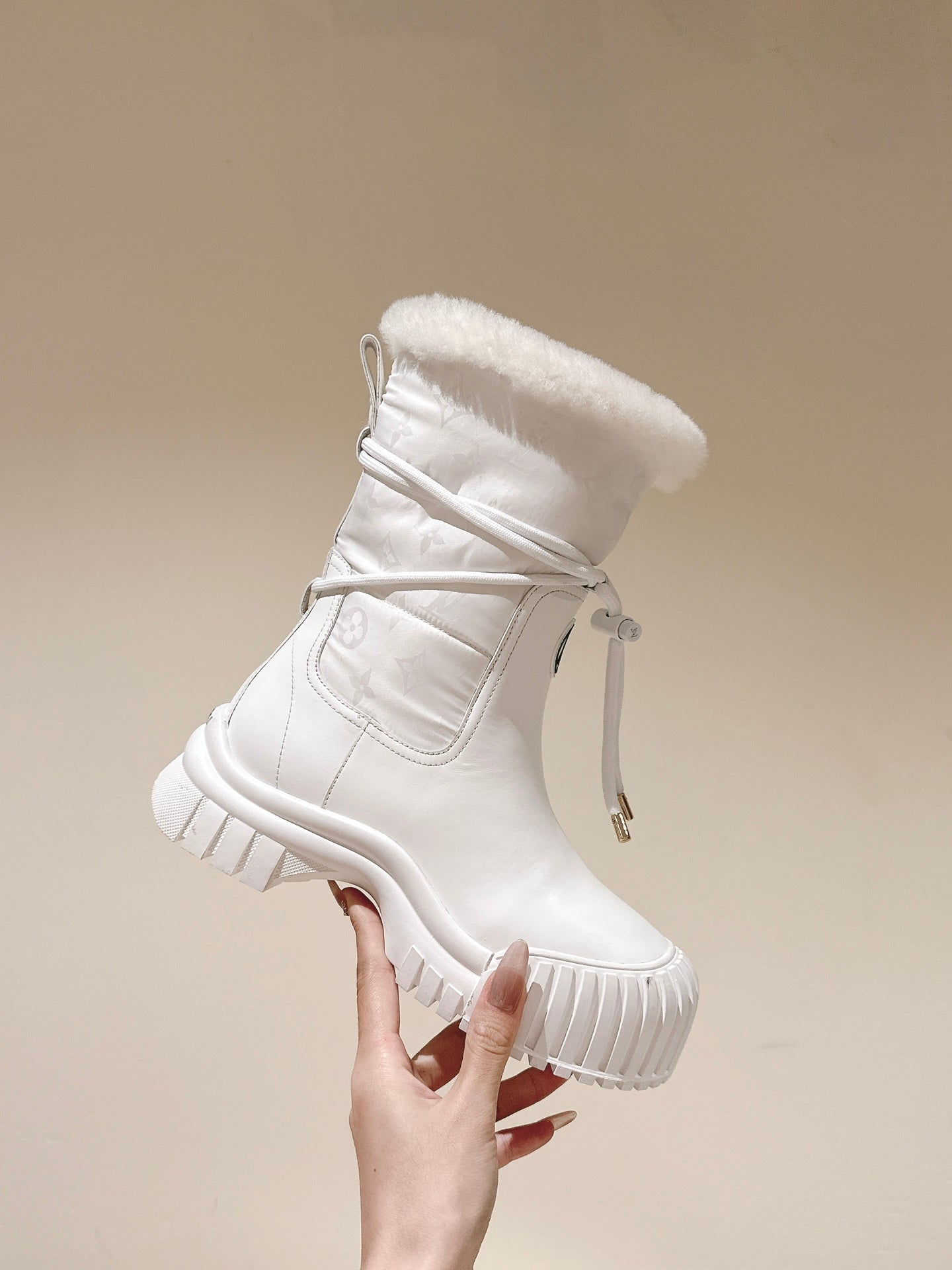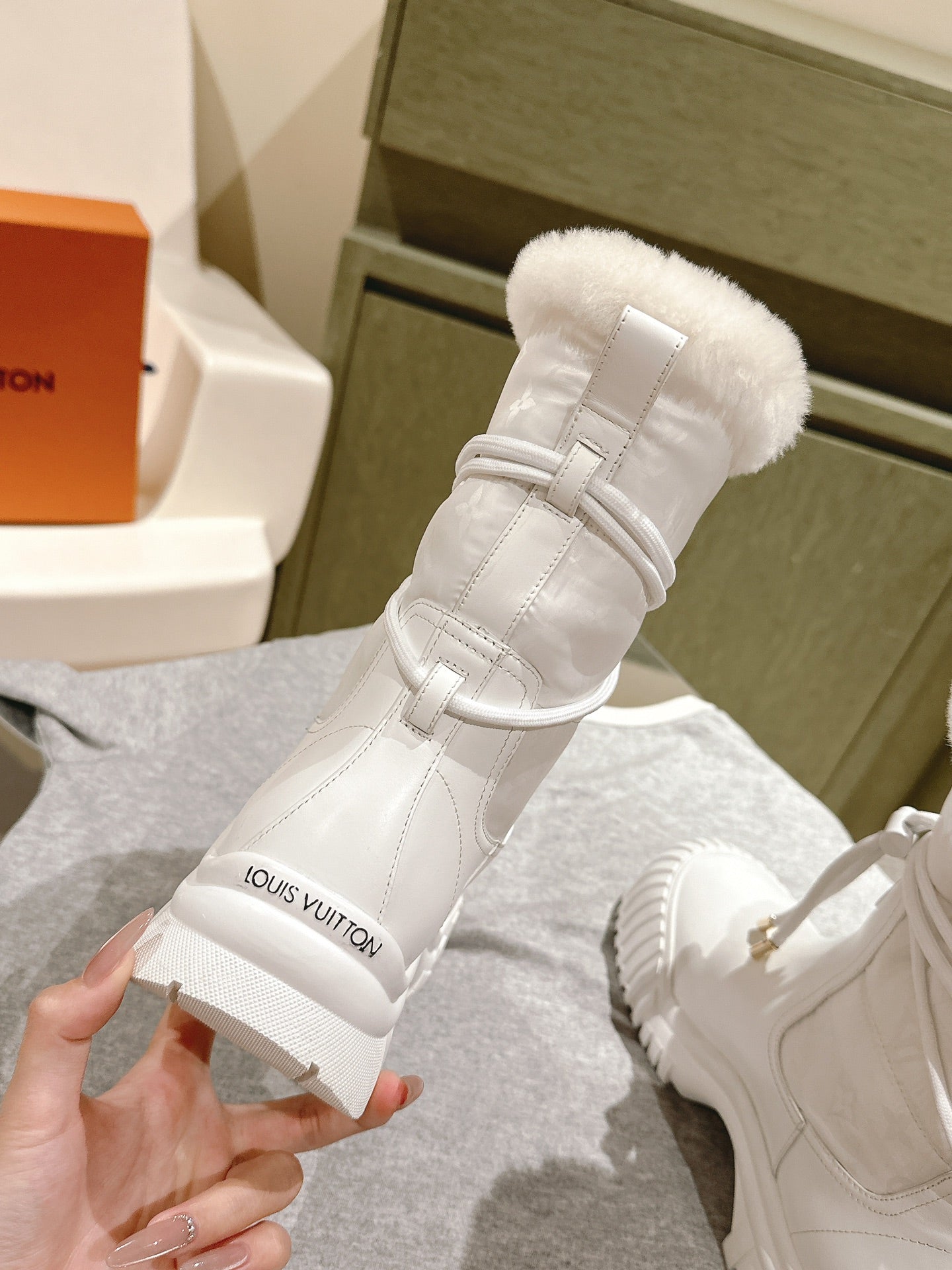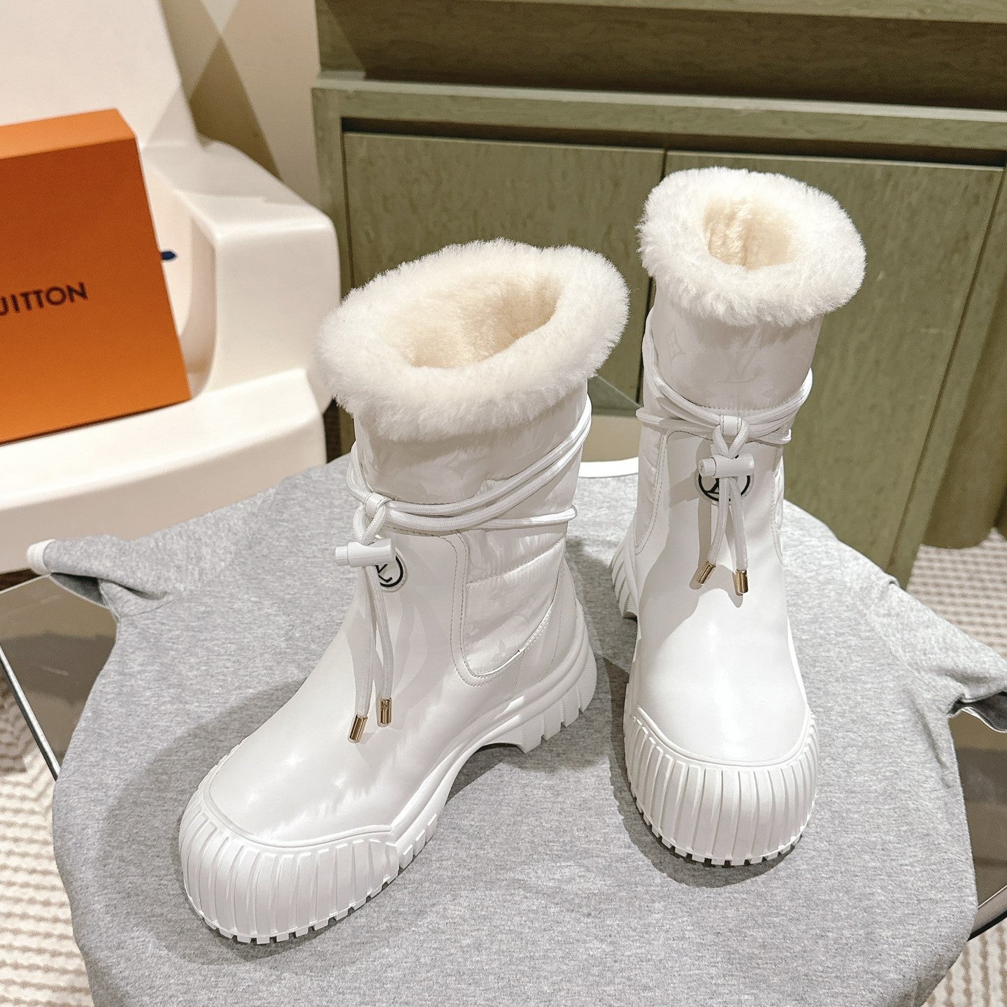 LV Ruby Flat Ankle Boots 50mm White Shearing Cowhide 449884