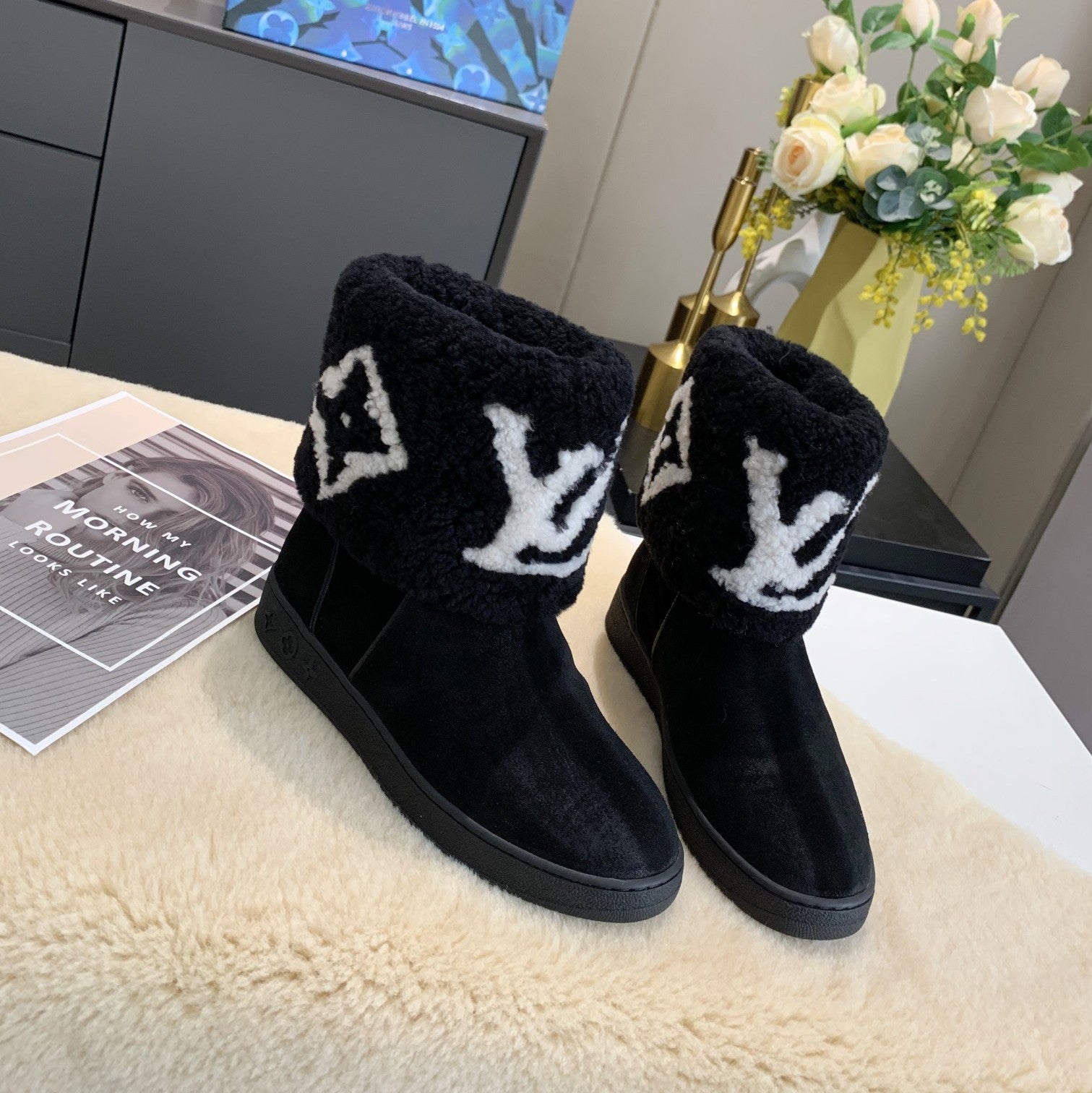 LV Snowdrop Flat Ankle Boot Black Suede Wool 454717