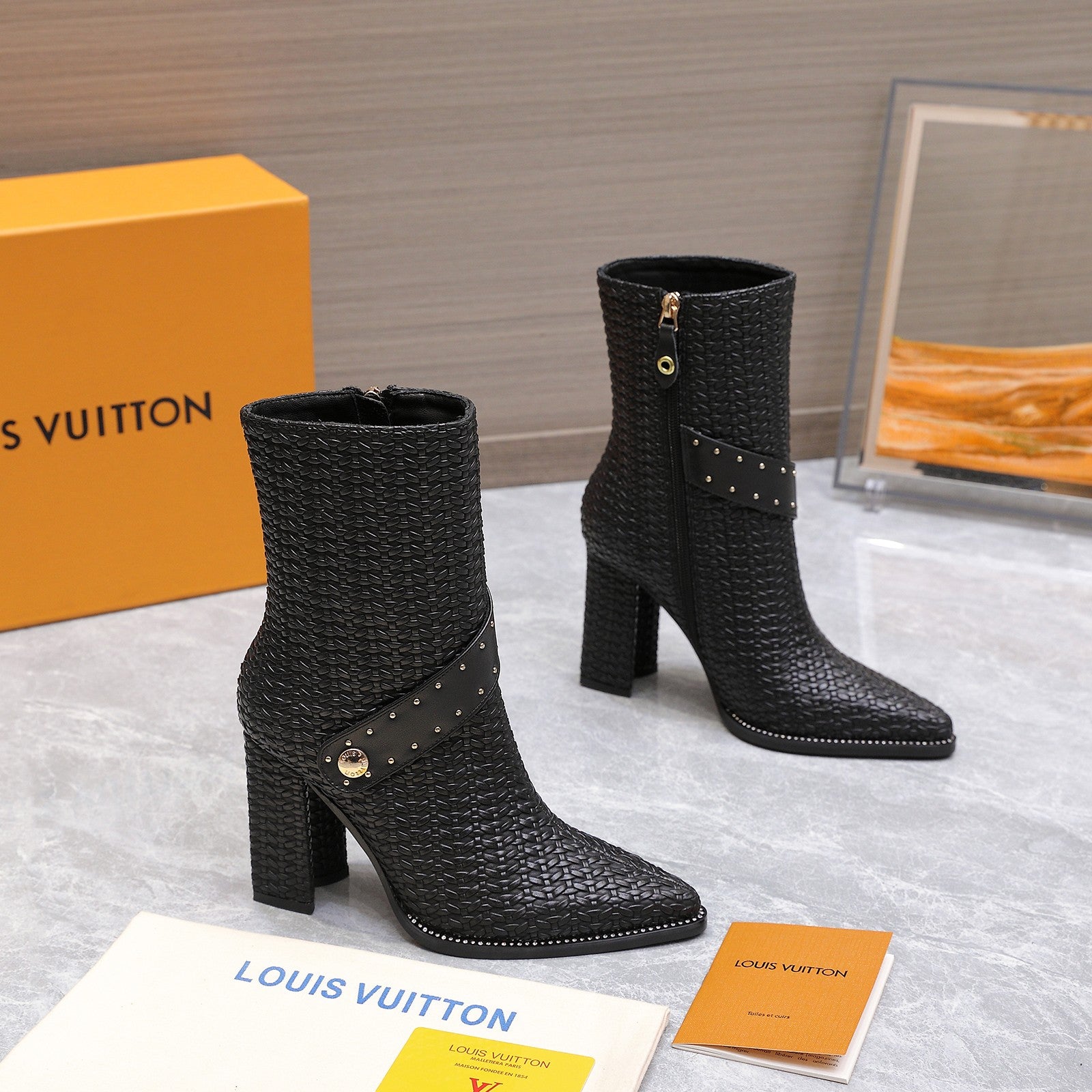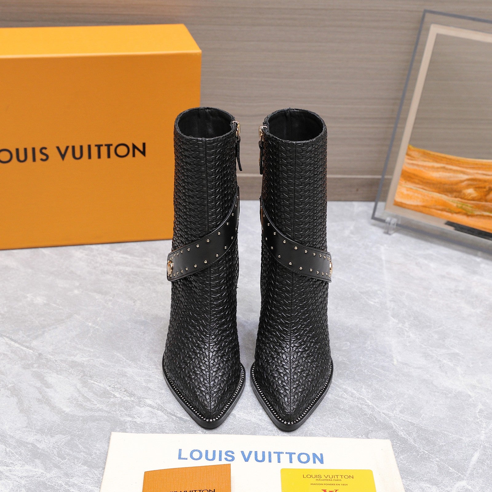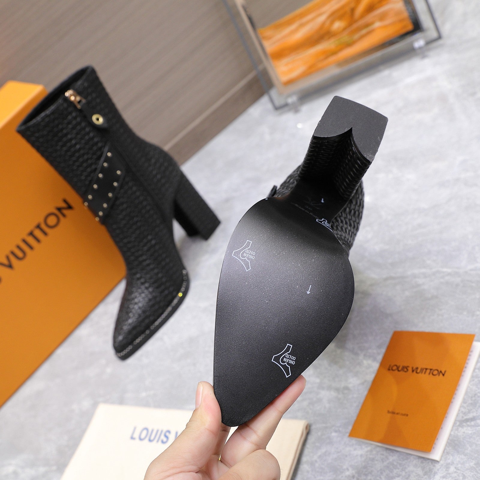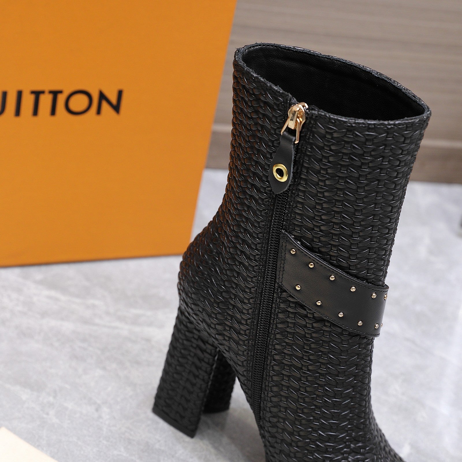 LV x Silhouette Basketweave Pattern Boots 95mm Black Leather 425684