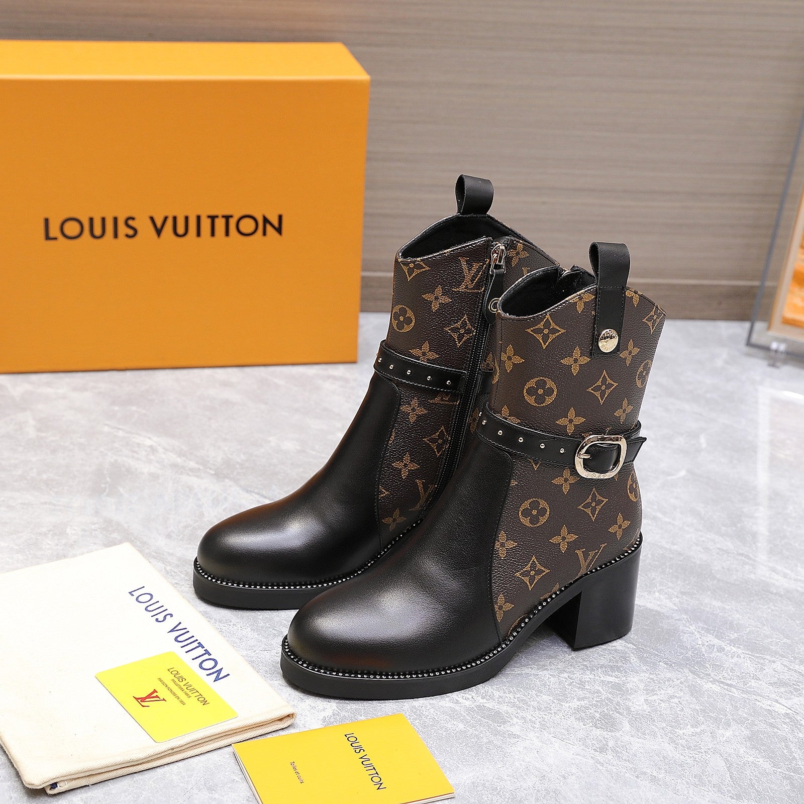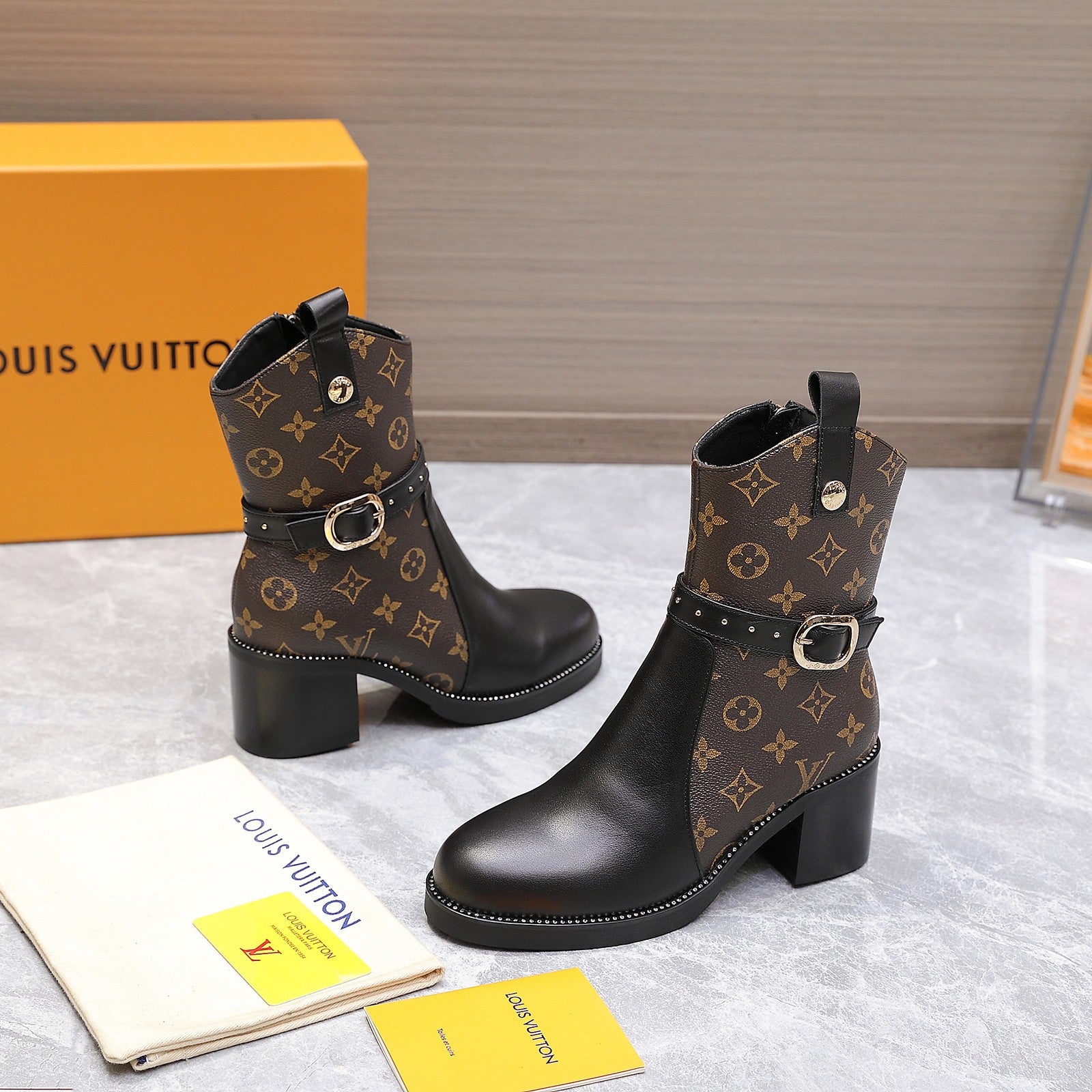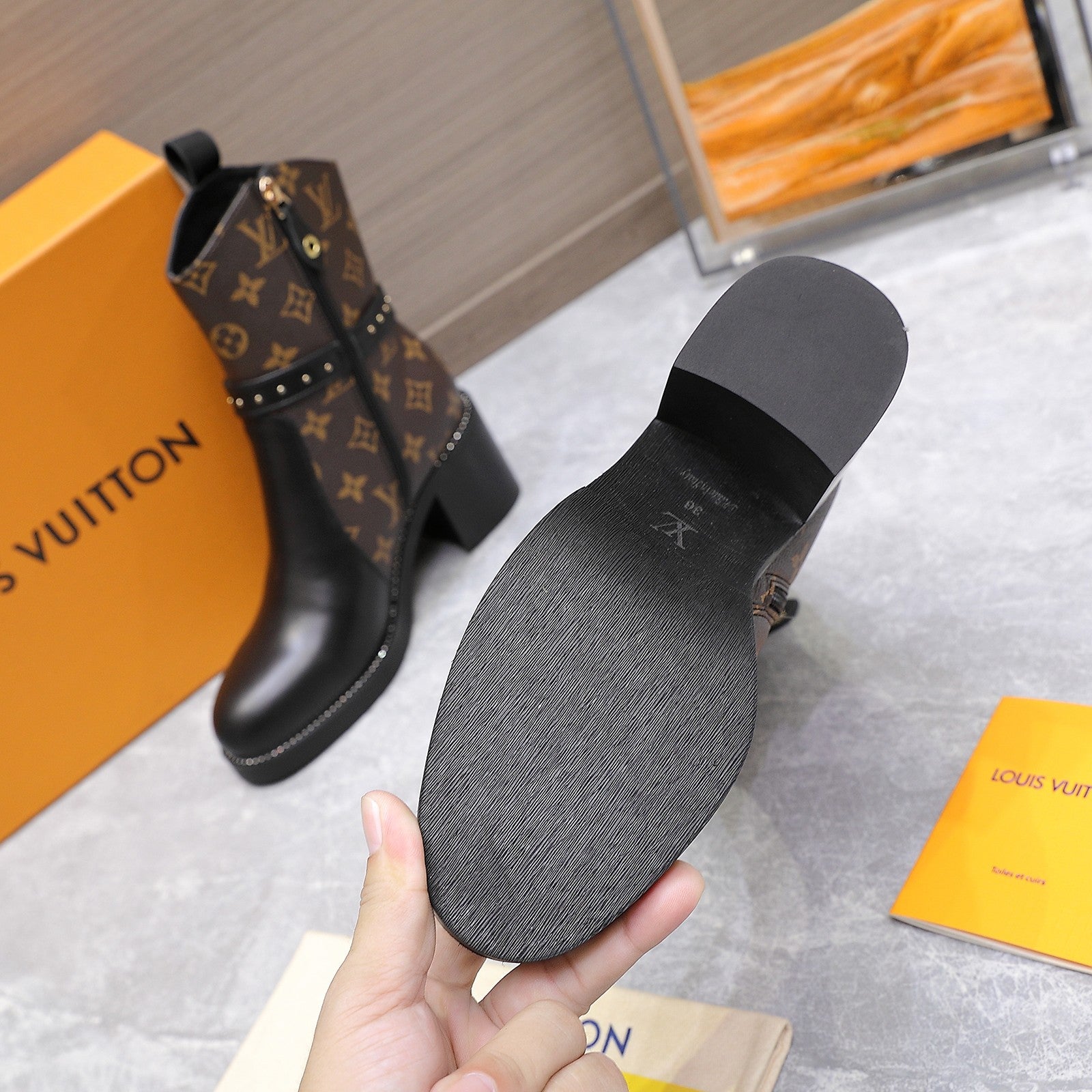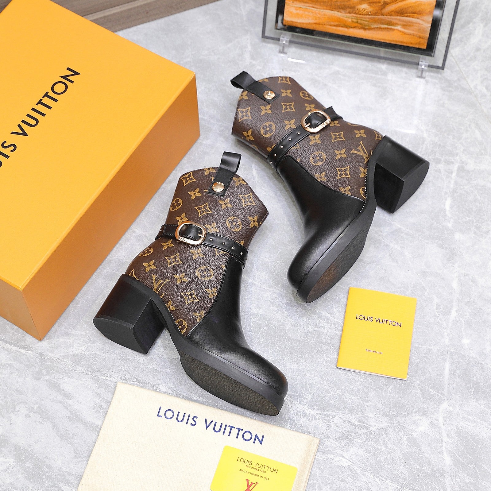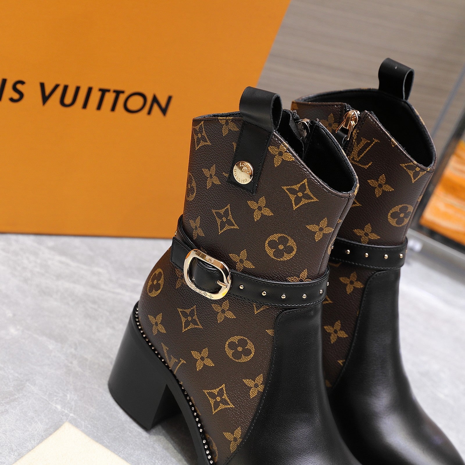 LVx Silhouette Buckle Ankle Boot 55mm Black Calfskin & Monogram Canvas GHW 425693