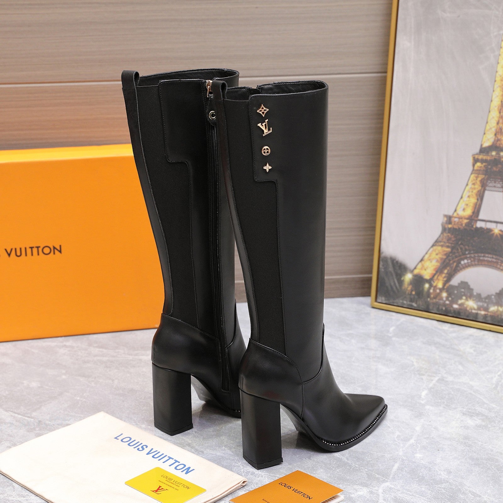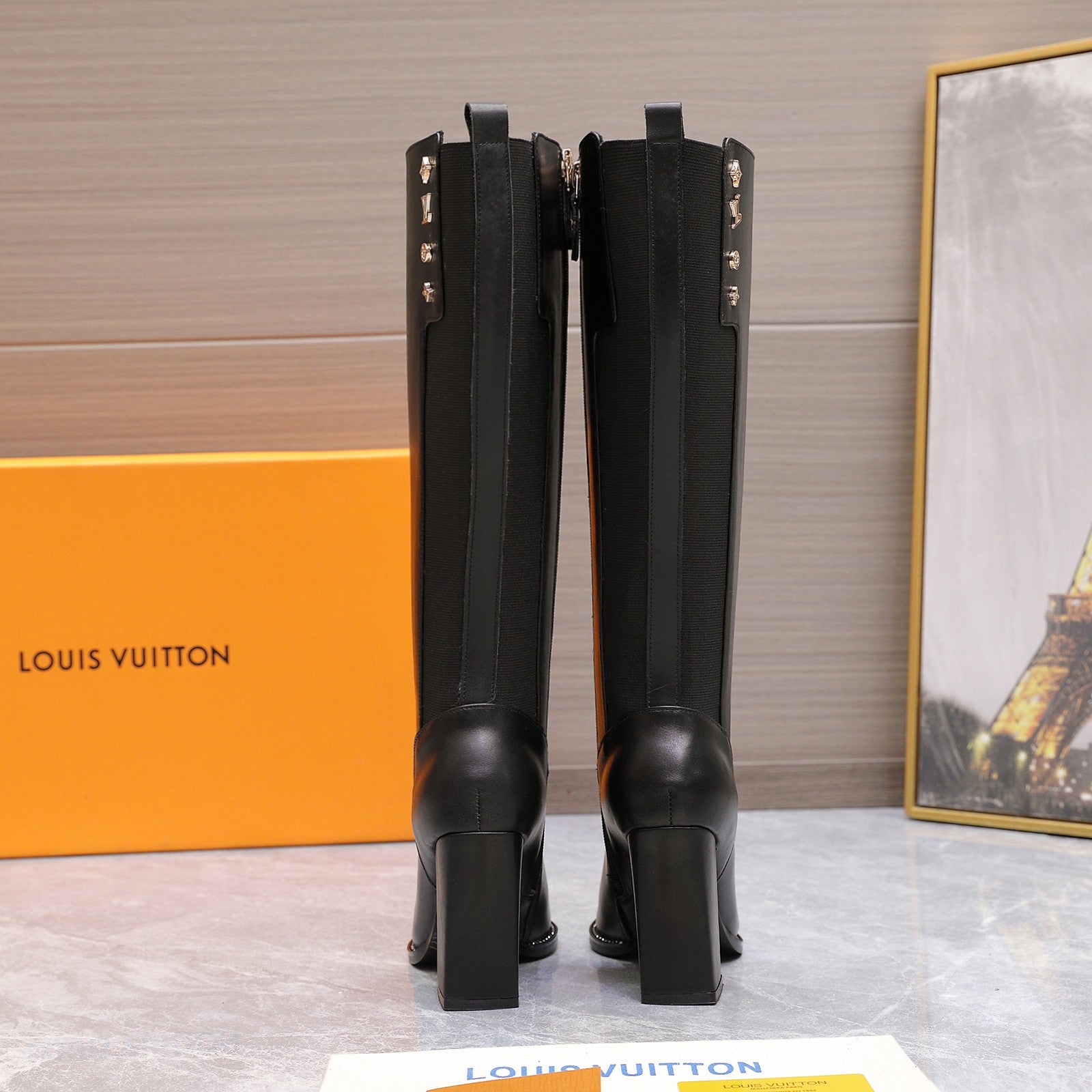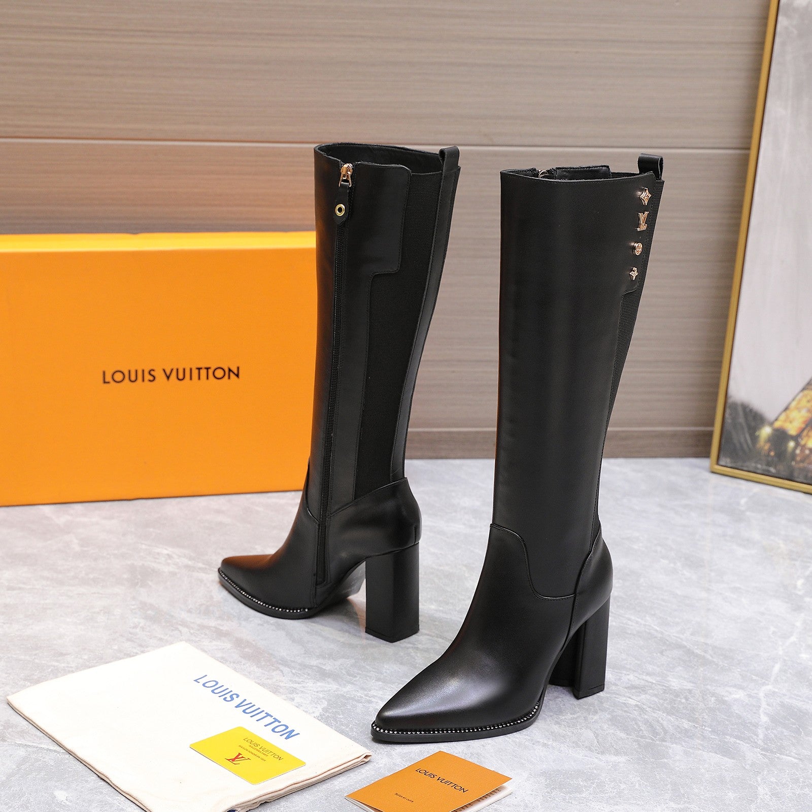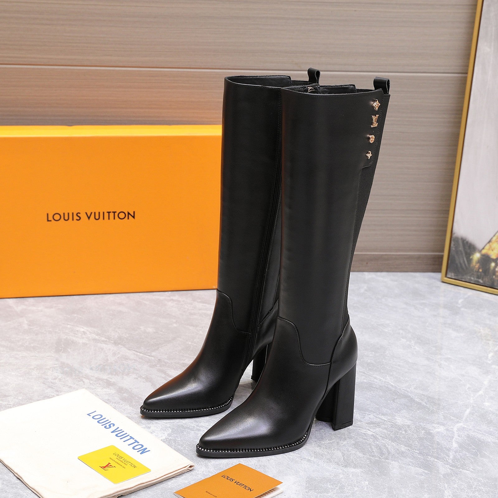 LVx Silhouette Logo Stud Long Boot 95mm Black Leather 425690