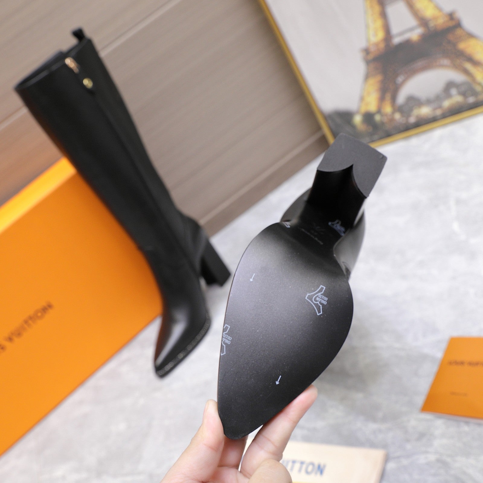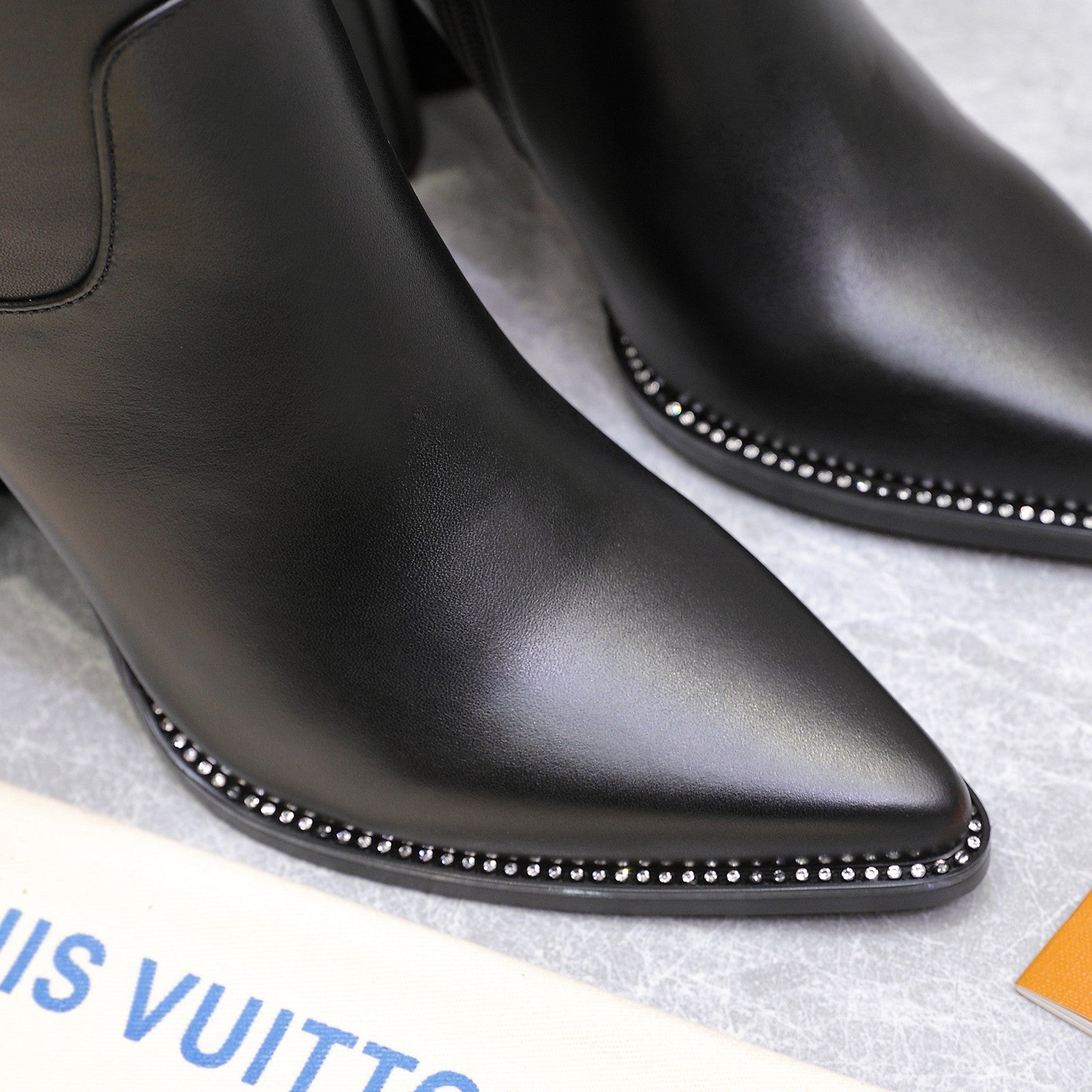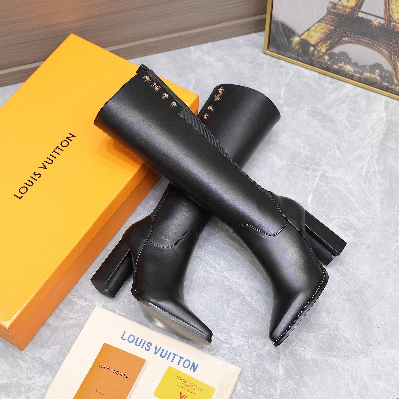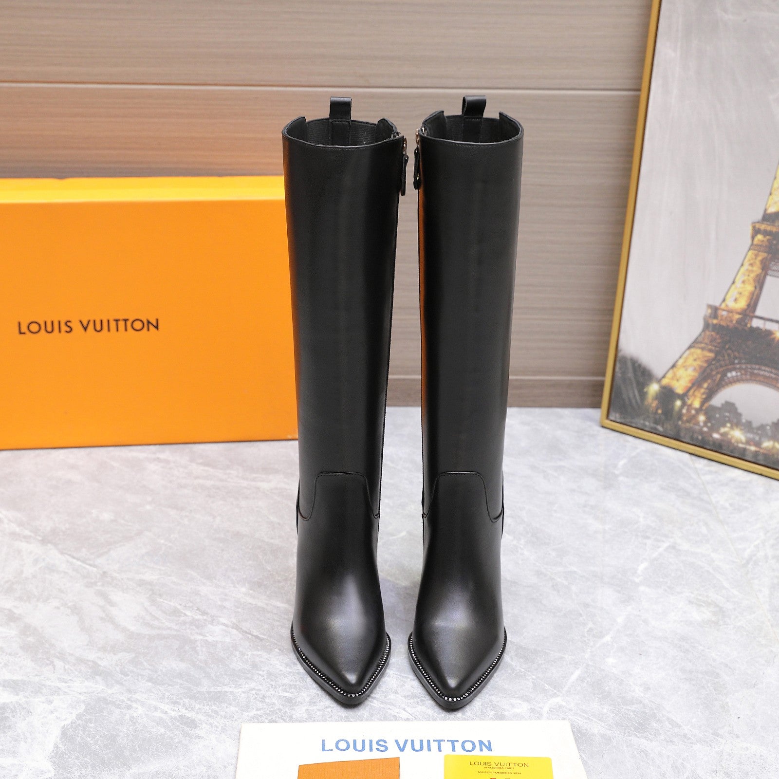 LVx Silhouette Logo Stud Long Boot 95mm Black Leather 425690