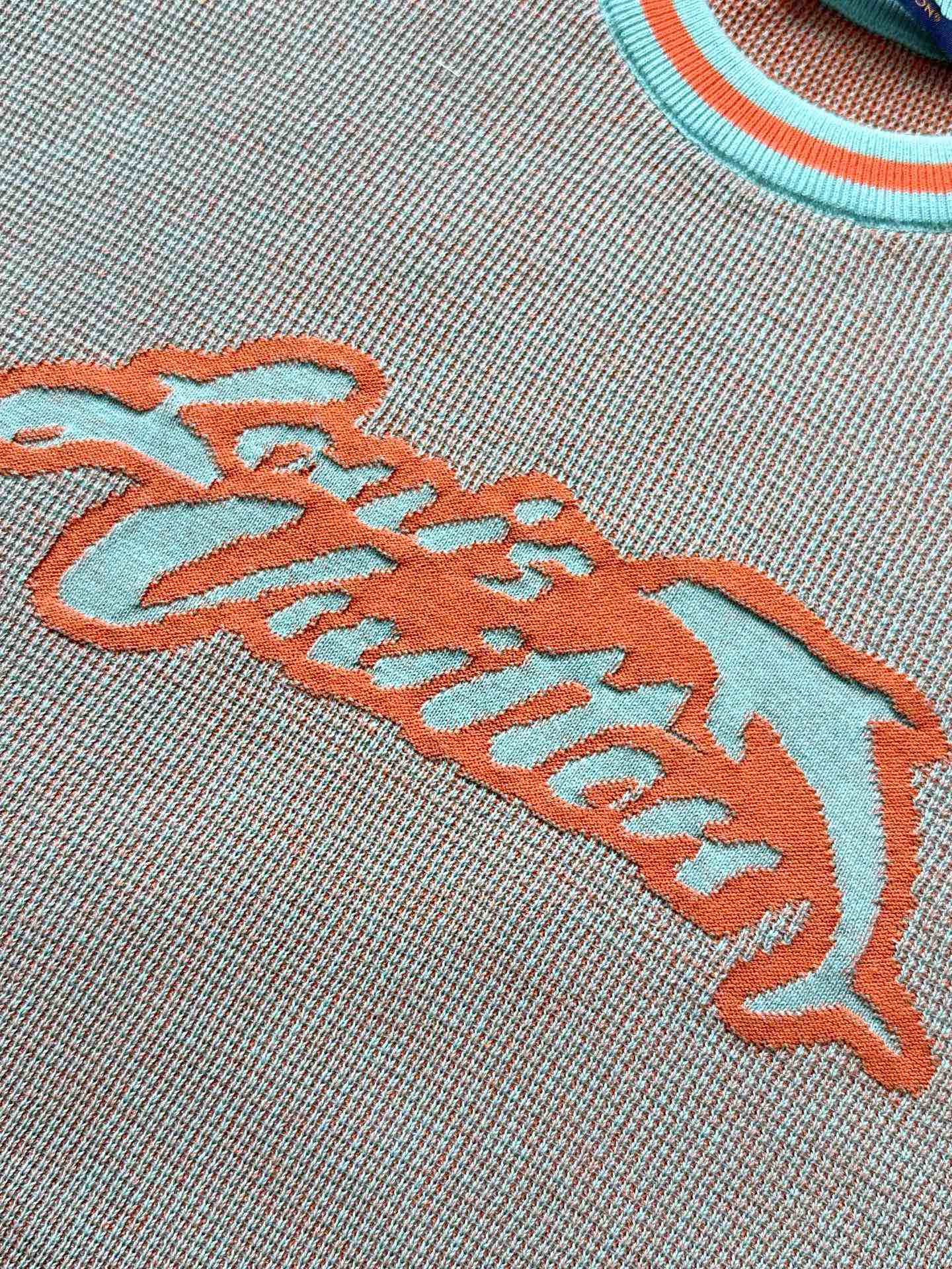 LV 25 Dolphin Jacquard Short Sleeve Shirt Blue Sweater Knit