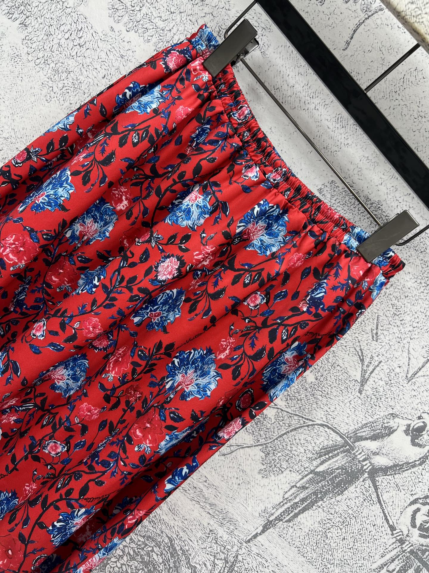 LV 25 Elastic Waist Old Flower Leather Skirt Red Poliester