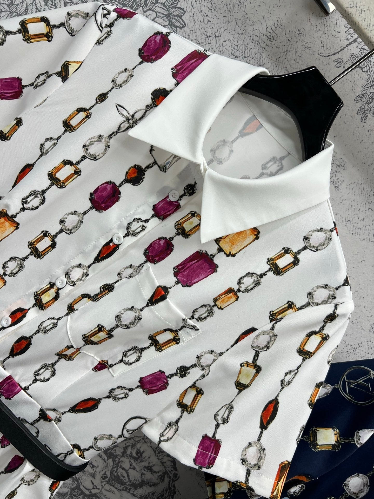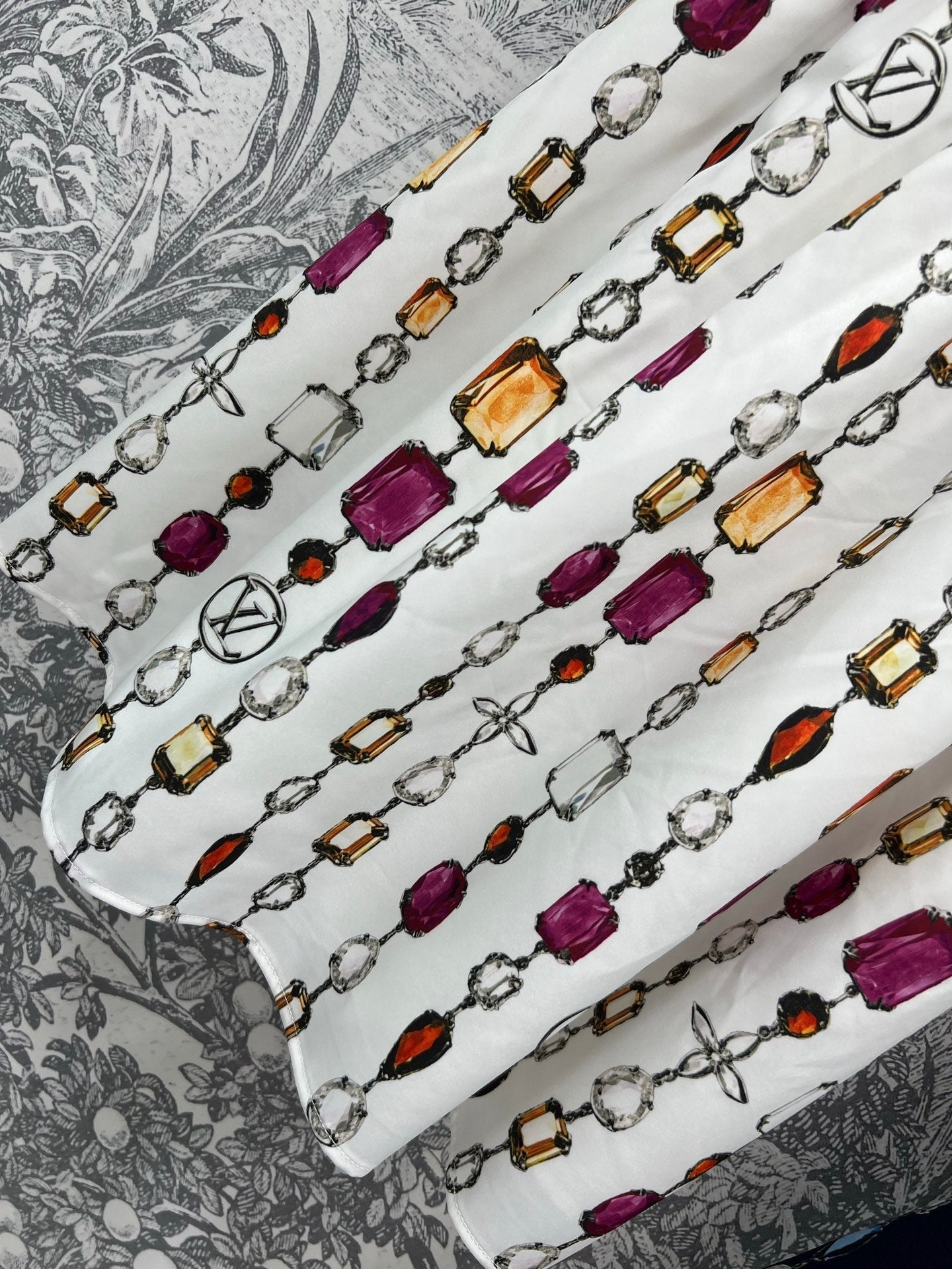 LV 25 Printed Round Neck Lining Pleated Dress White BLue Poliester