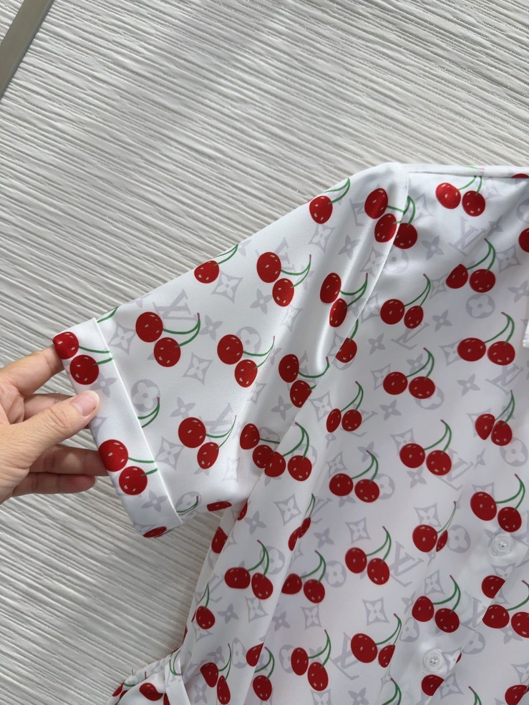 LV 25S Cherry Printed Dress White Red Poliester