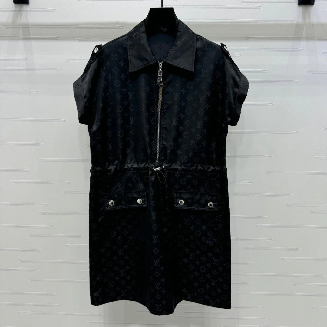 LV 25S SHORT SLEEVE JACQUARD DRAWSTRING DRESS 264215