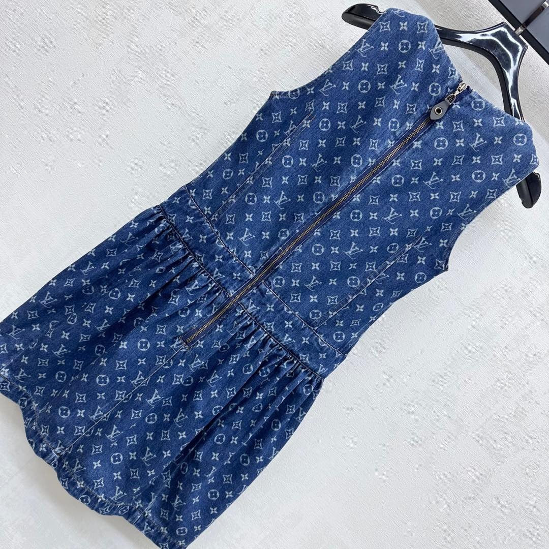 LV DENIM SLEEVELESS ROUND-NECK DENIM BLAZER DRESS 274793