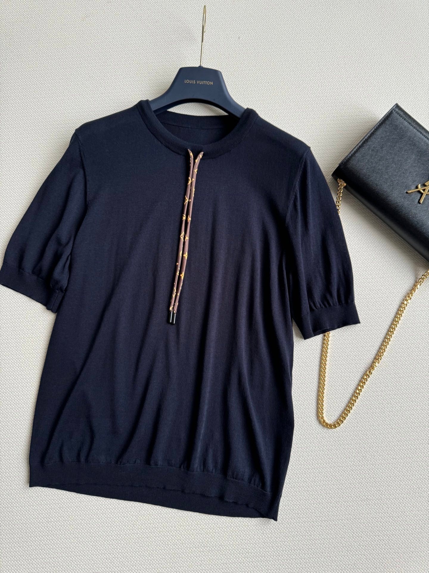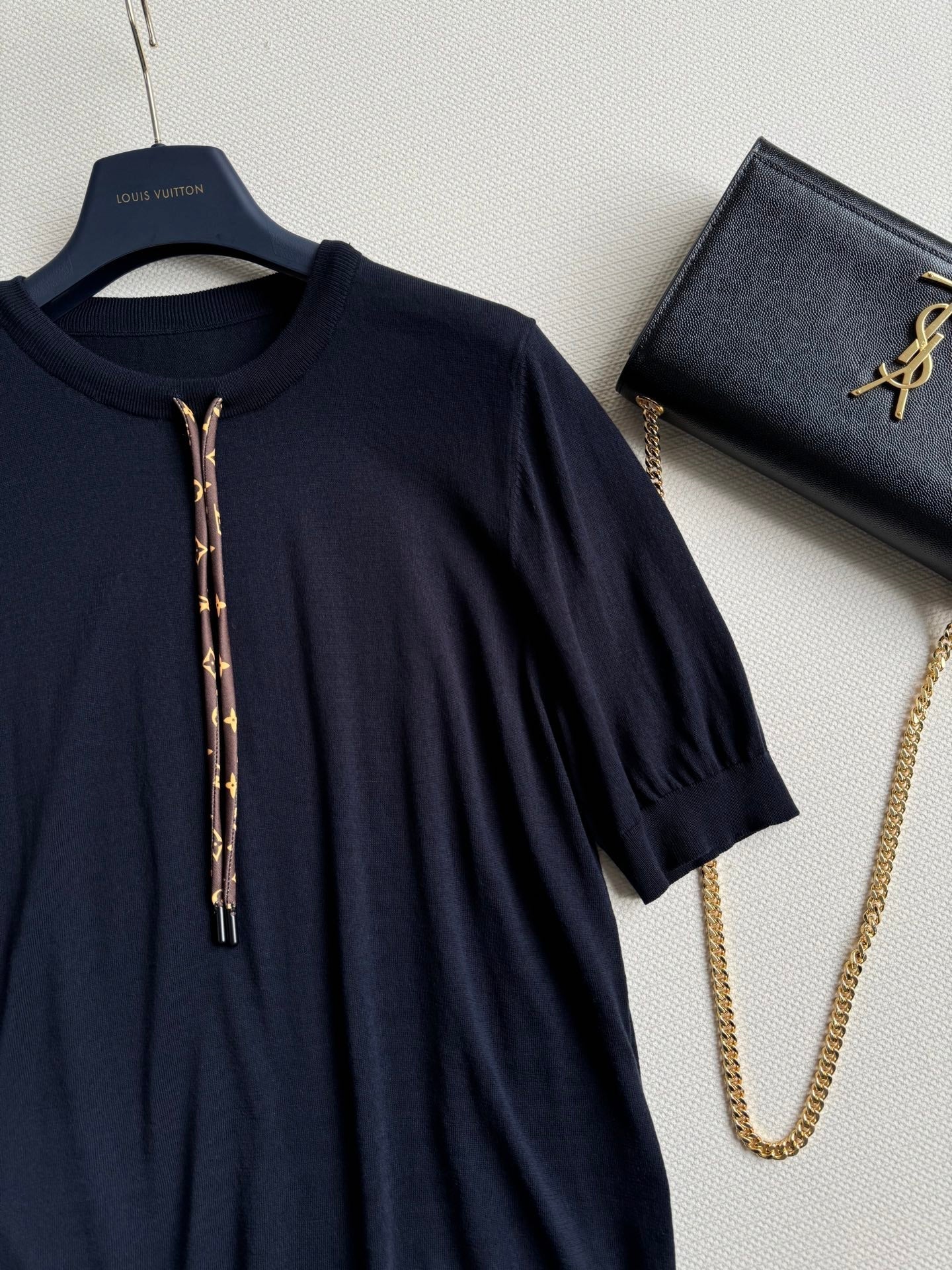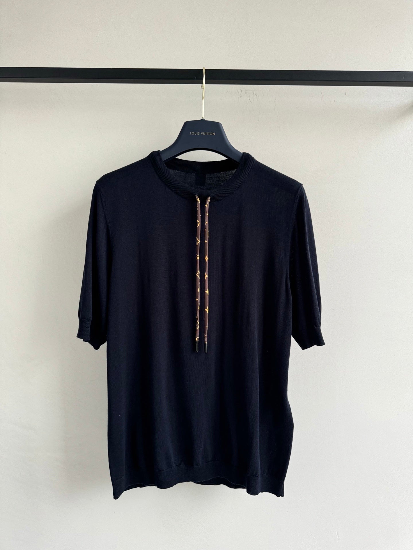 LV Knitted T Shirt Black Cotton Wool