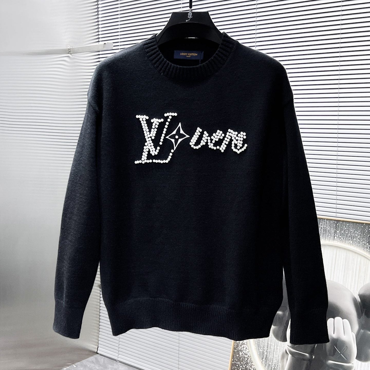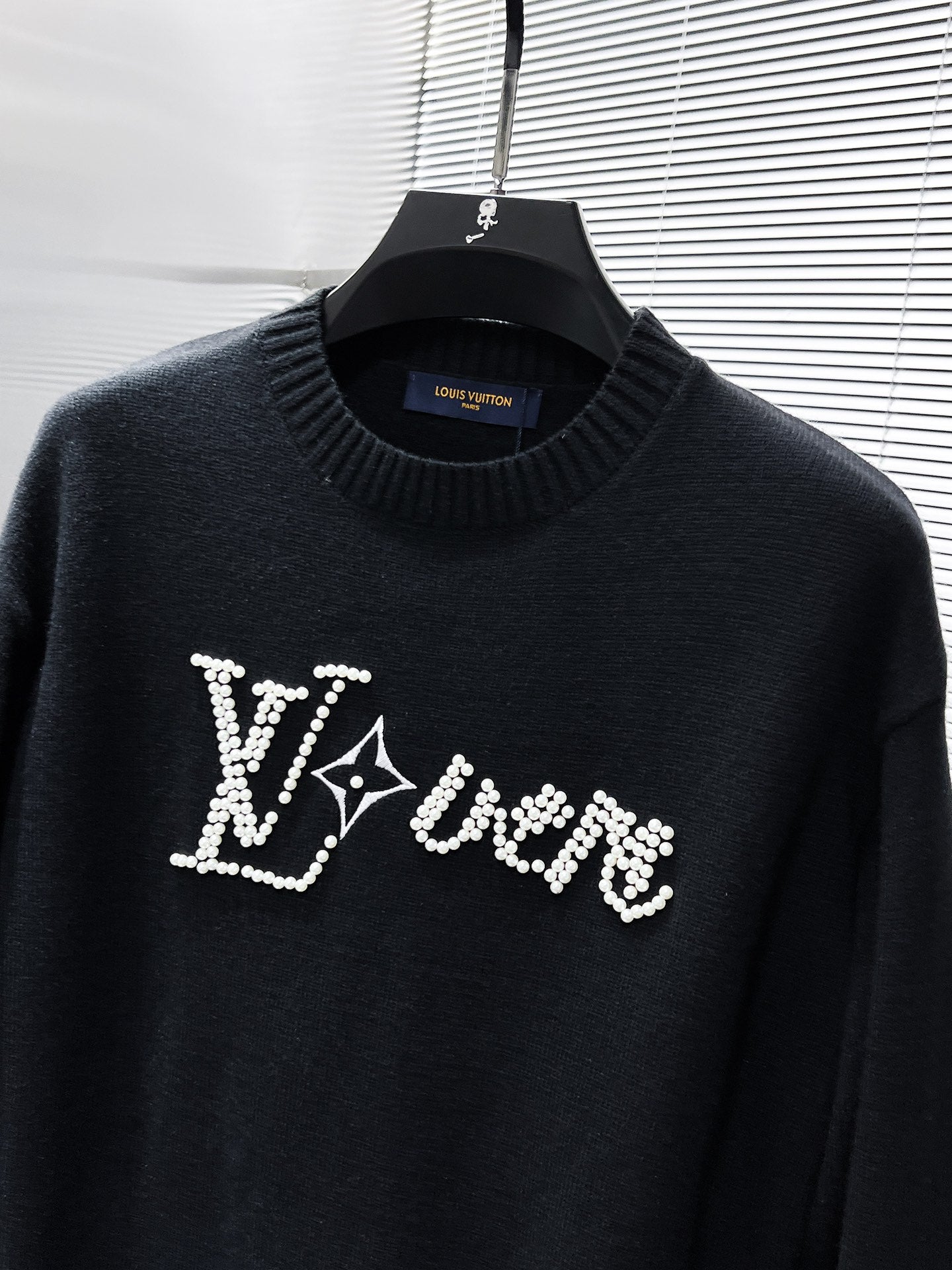 LV SWEATER IN BLACK KNITTED WOOL ATTACHED PEARL 238809