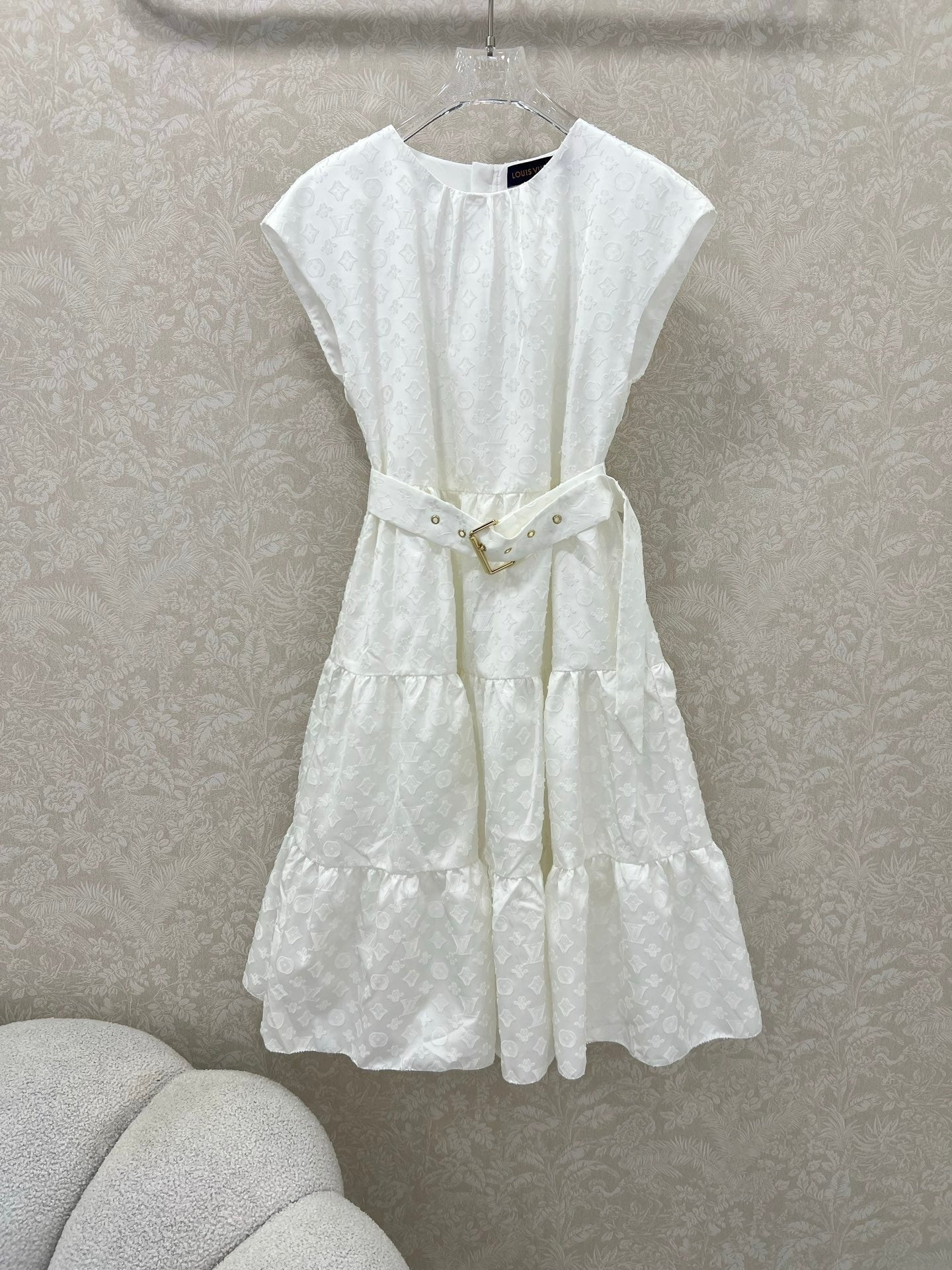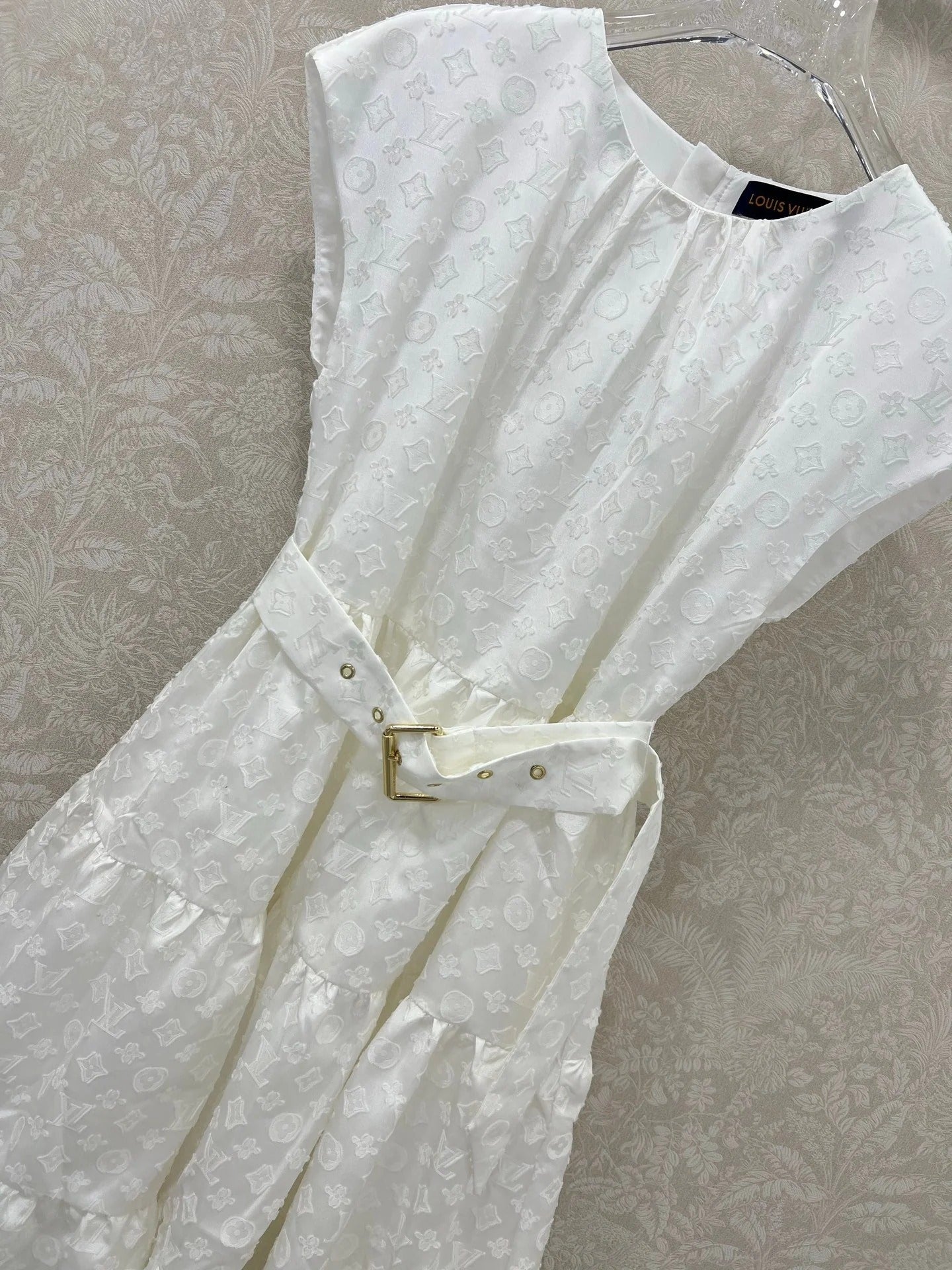 LV WHITE SLEEVELESS DRESS WITH BELT 269224