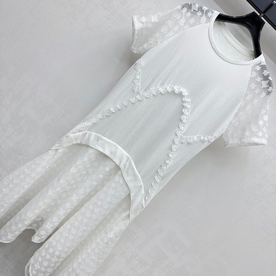 LV WHITE COTTON SHORT-SLEEVE DRESS 263735
