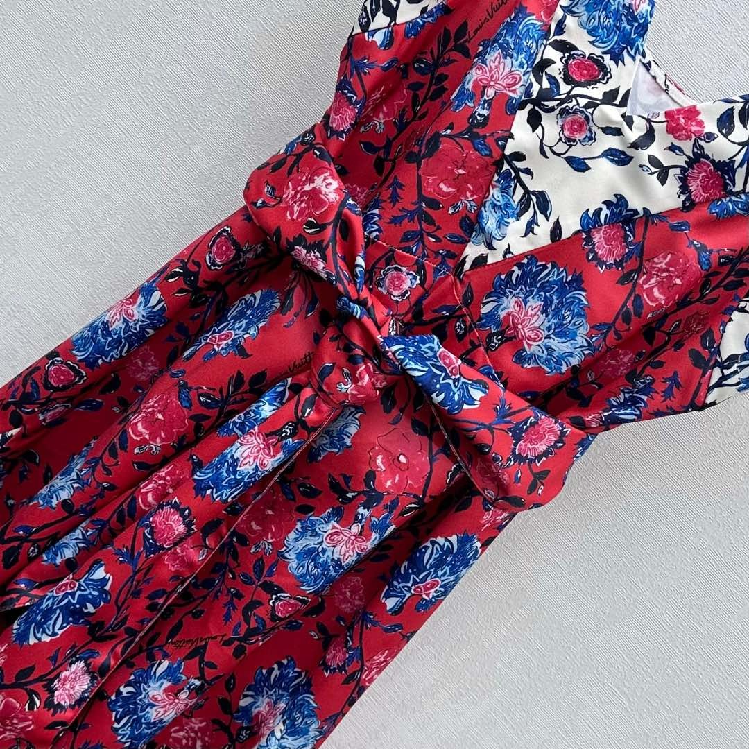 LV SLEEVELESS V-NECK DRESS WITH WAIST TIE 263818