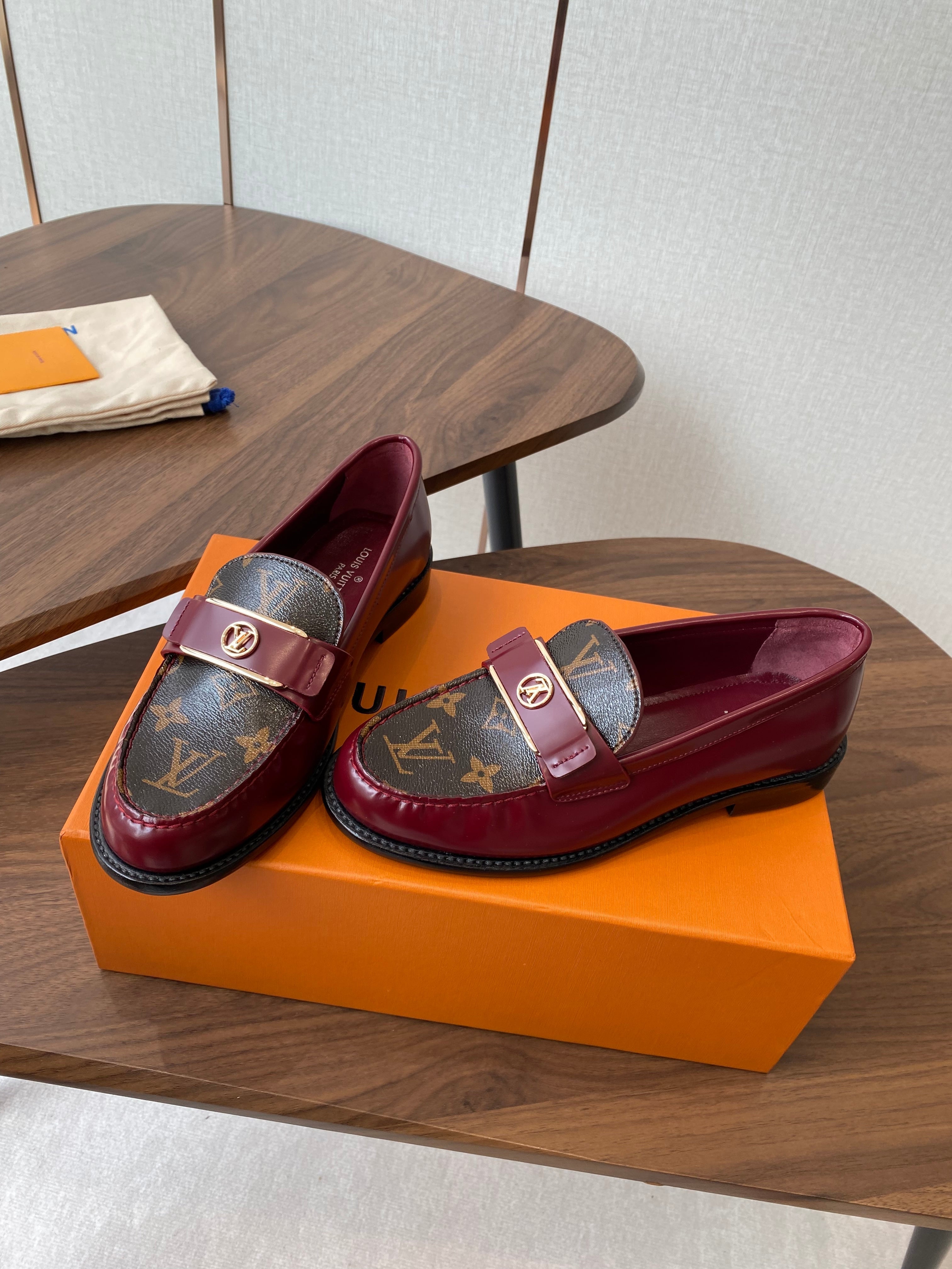 LV Academy Loafer Brown Monogram Canvas & Burdundy Patent Leather 477727