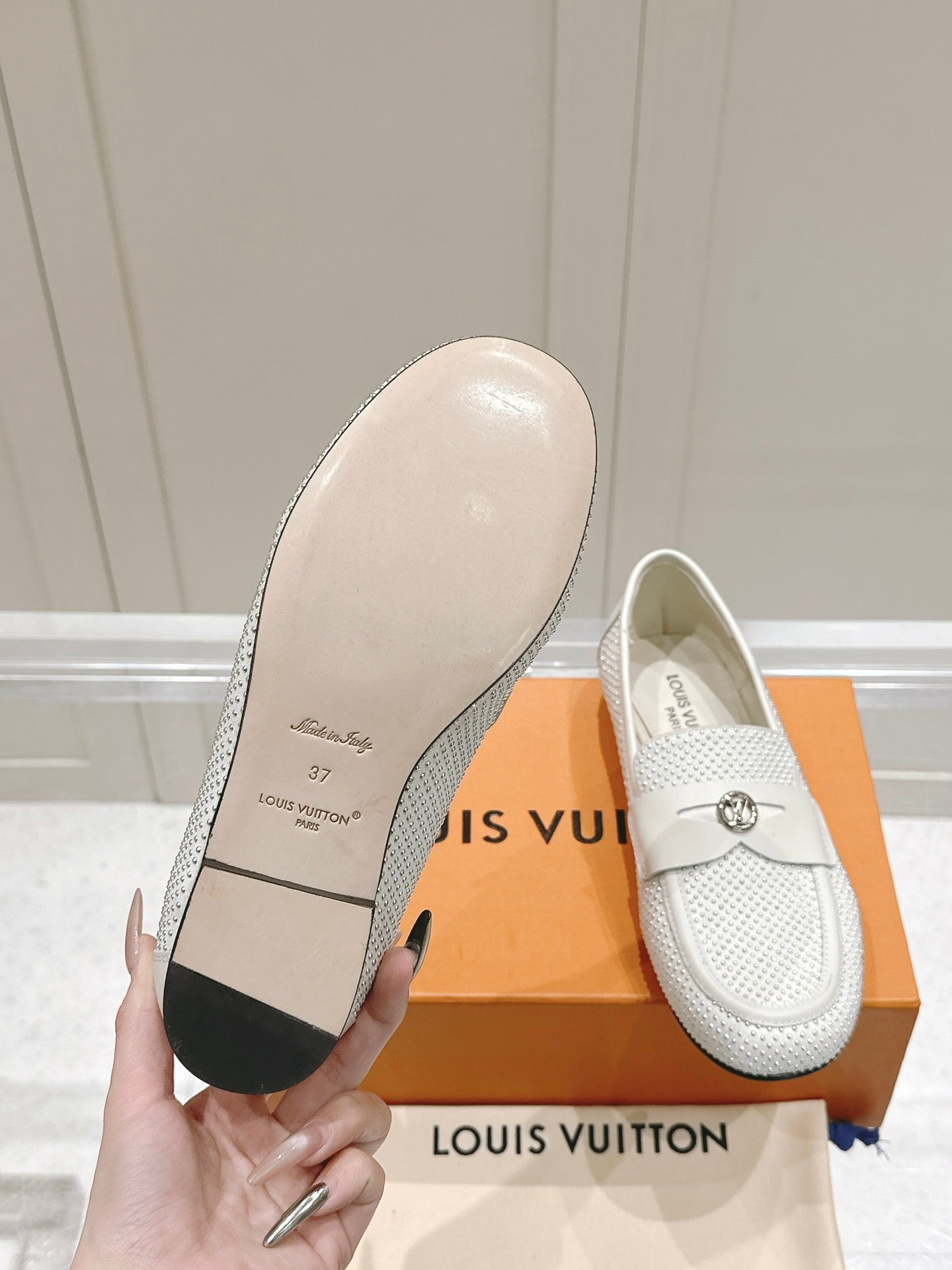 LV 25ss Soho Flat Loafer Rivets White Lambskin