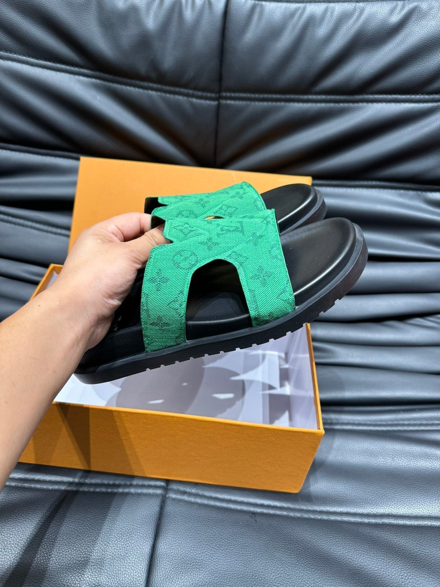 LV OASIS MULE IN EMERALD GREEN MONOGRAM JACQUARD