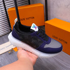 LV SNEAKER BLACK MIX NAVY BLUE CALFSKIN AND GREY MESH BREATHABLE