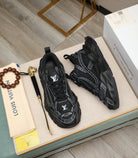 LV TRAINER IN BLACK CALFSKIN AND BREATHABLE MESH