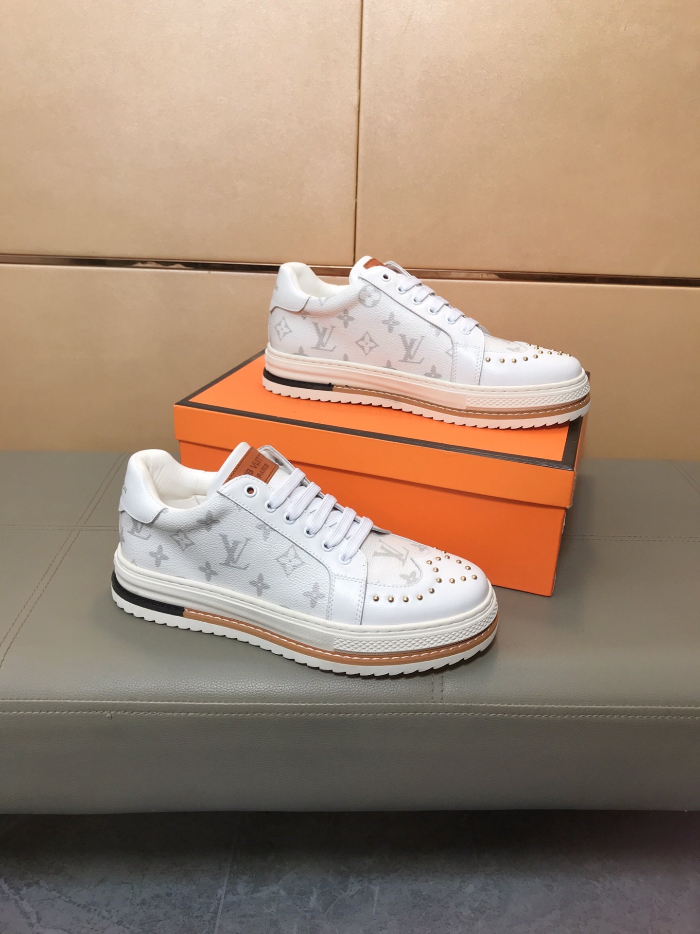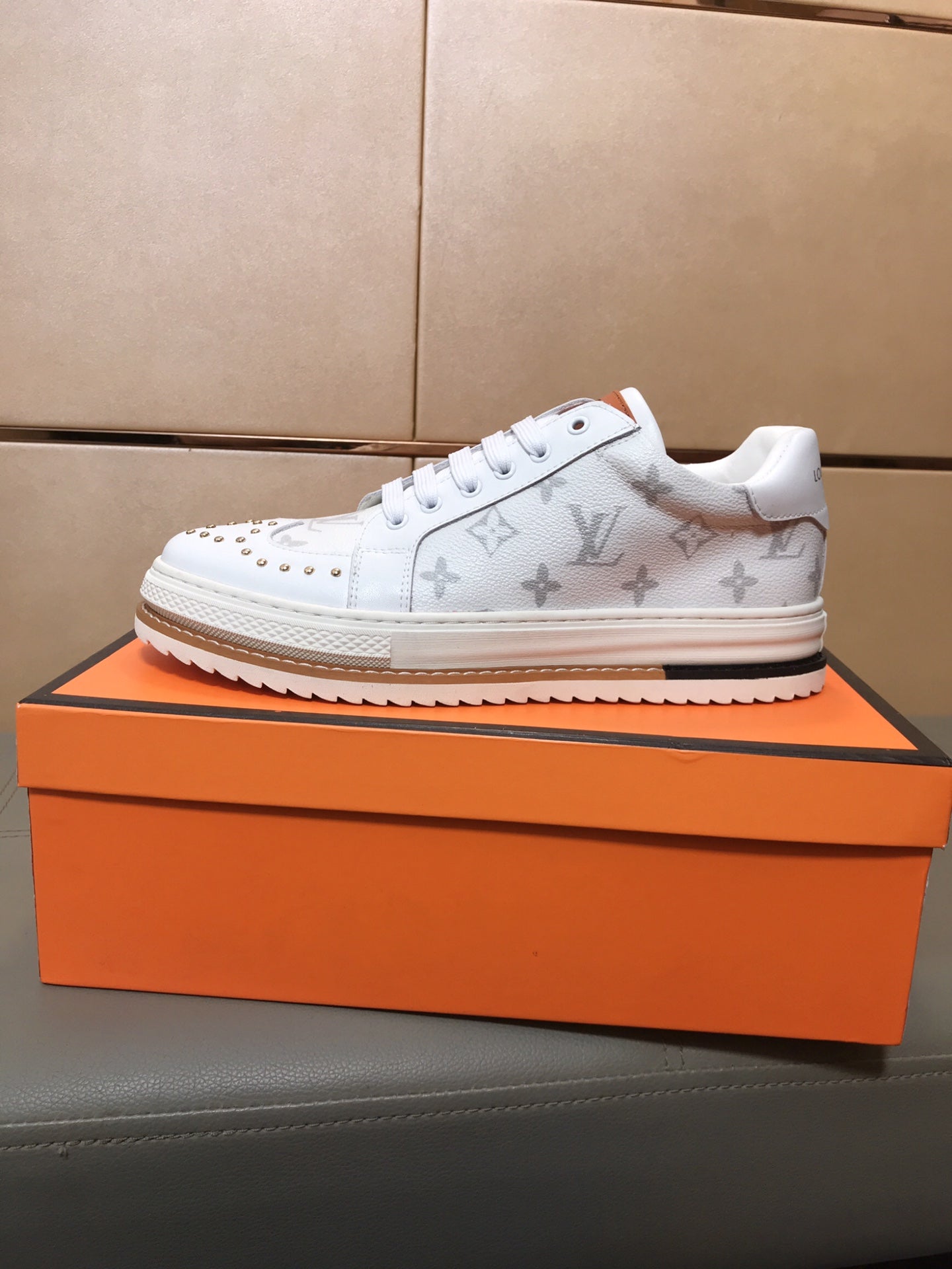 LV TRAINER IN WHITE MONOGRAM CALFSKIN