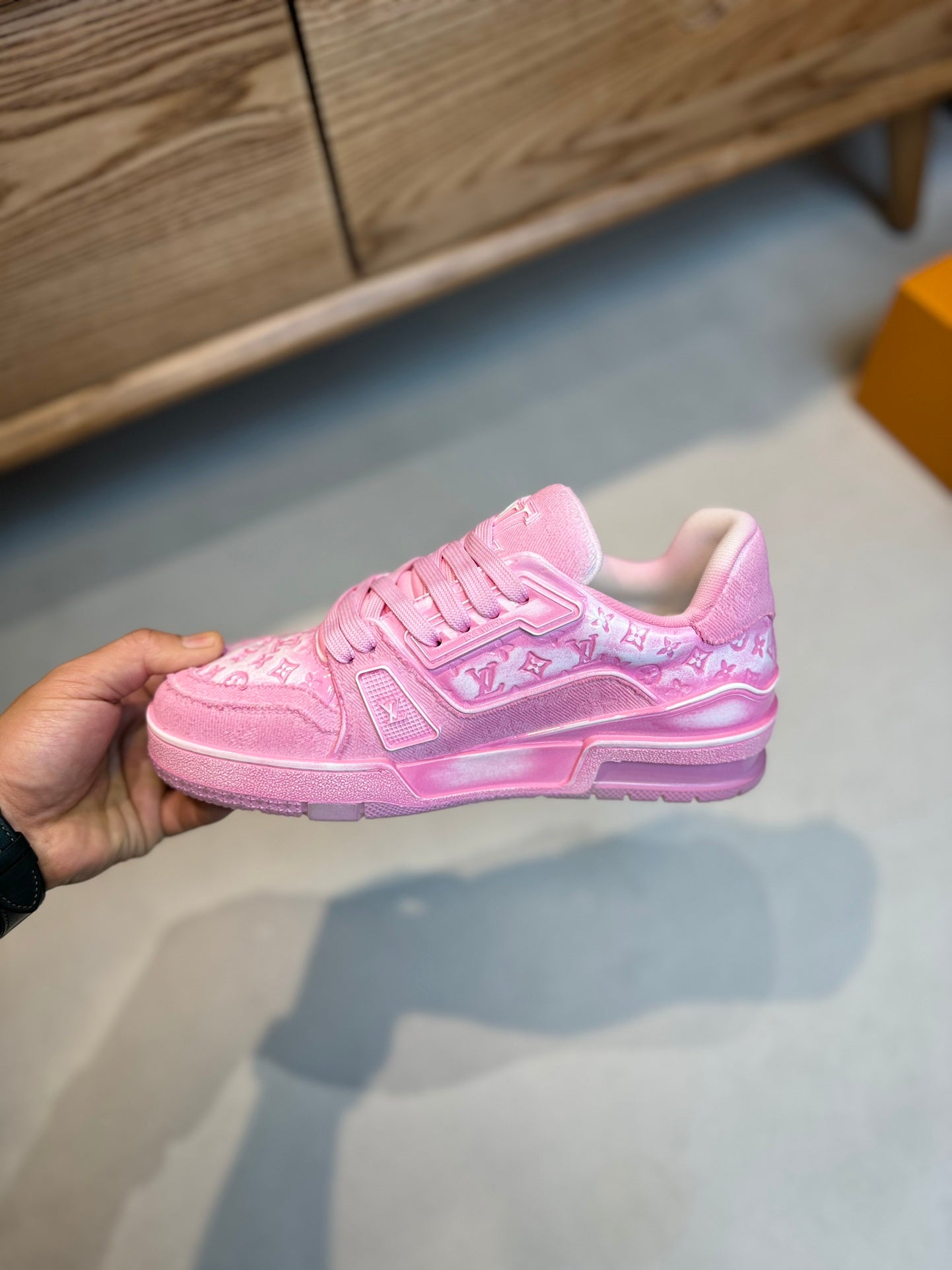 LV TRAINER MONOGRAM DENIM WHITE PINK SNEAKER