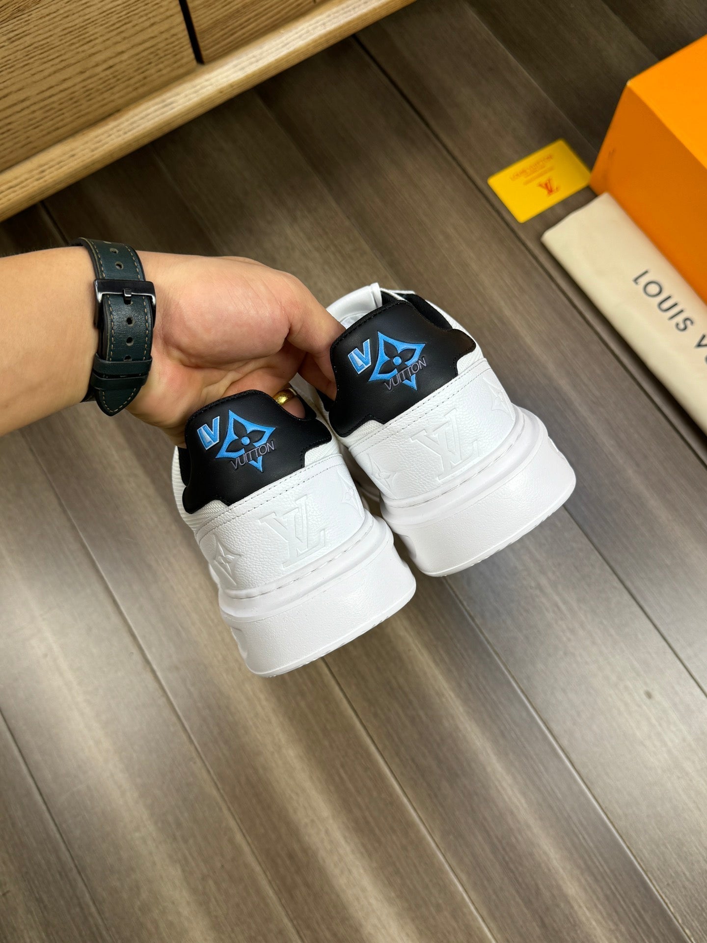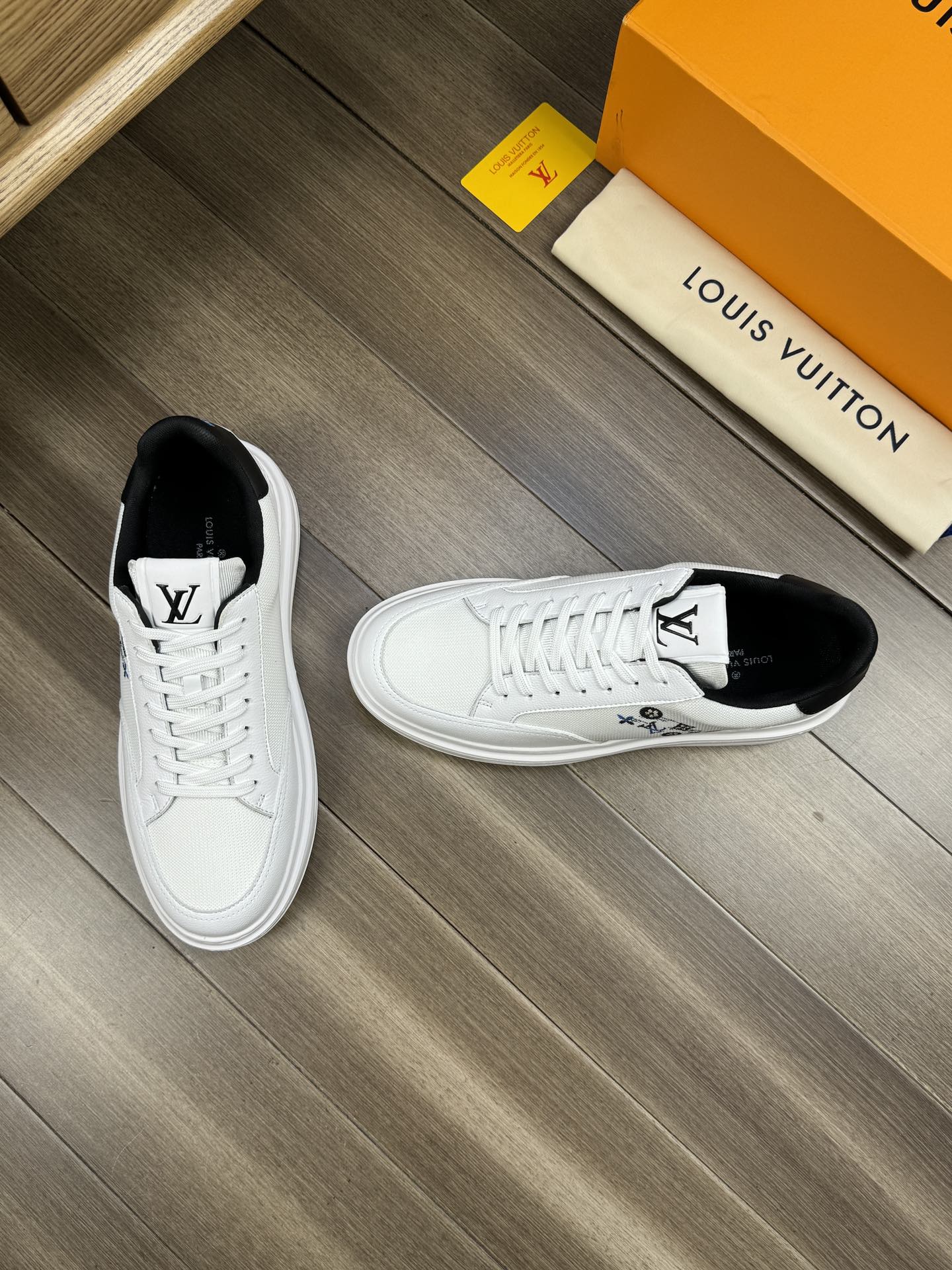 LV TRAINER SNEAKER WHITE AND BLACK CALFSKIN AND BREATHABLE FABRIC