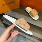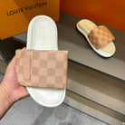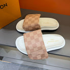 LV VELCRO SLIPPERS DESERT SAND DAMIER MONOGRAM CALFSKIN