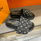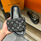 LV VELCRO SLIPPERS IN BLACK MONOGRAM JACQUARD