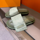 LV VELCRO SLIPPERS IN OLIVE GREEN MONOGRAM JACQUARD