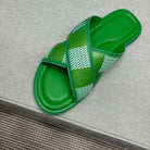 • Premium LV men's slippers, synchronizing with the 2024 early autumn runway collection. The slippers feature a high-quality fabric upper and an original, exclusive comfort sole, ensuring exceptional comfort. These are original factory-followed products.
