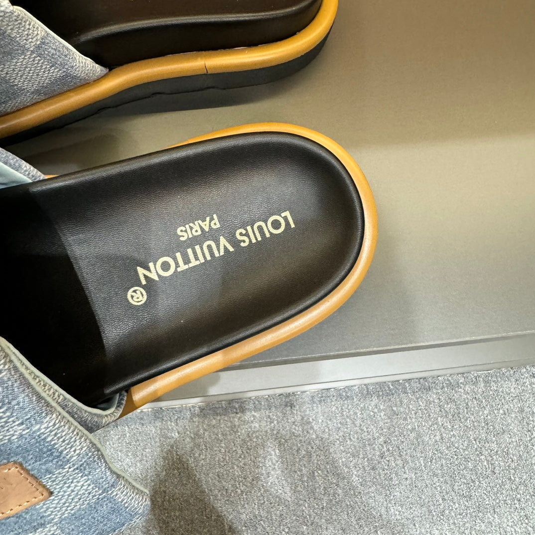 LV VELCRO SLIPPERS LIGHT BLUE DAMIER MONOGRAM JACQUARD