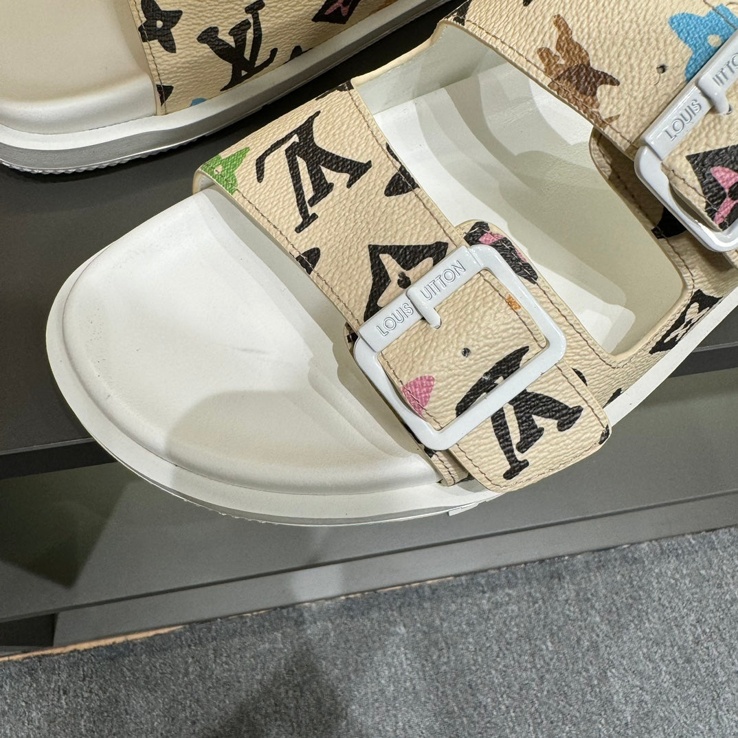 LV VELCRO SLIPPERS IN BEIGE CREAM MONOGRAM CALFSKIN