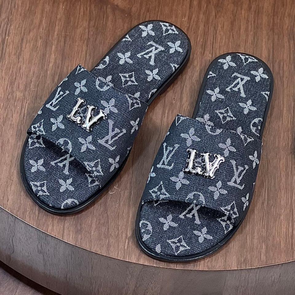 LV VELCRO SLIPPERS IN LIGHT BLUE MONOGRAM DENIM