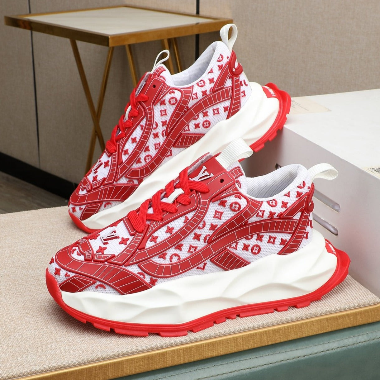 LV SNEAKER IN BLACK MIX RED BREATHABLE MESH FABRIC