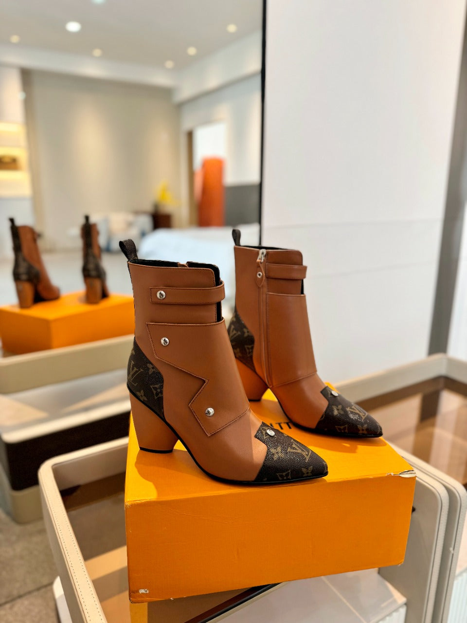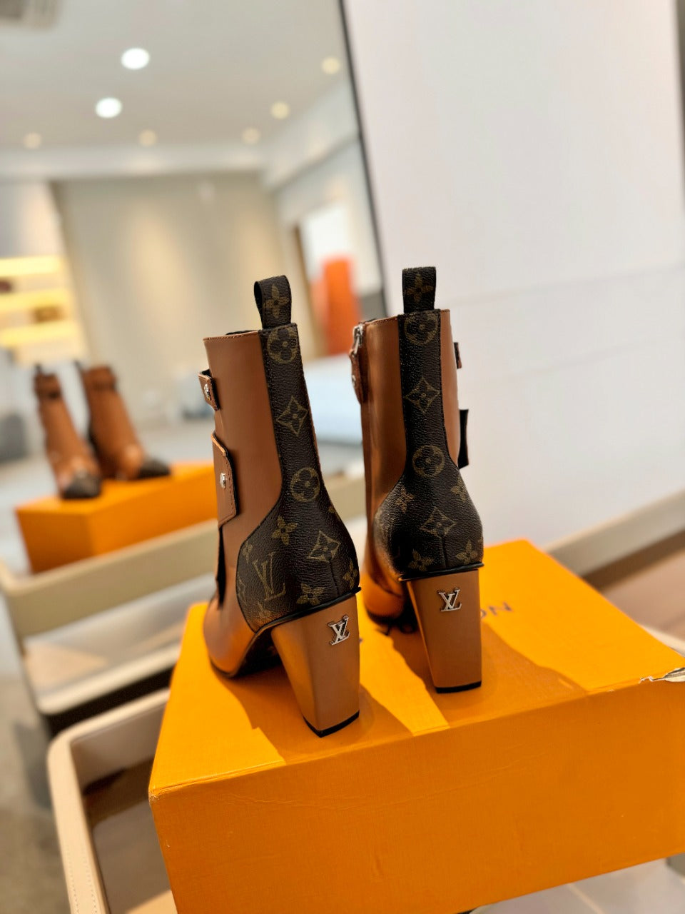 LV Trinity Ankle Boot 75mm Orange Brown Monogram Calfskin