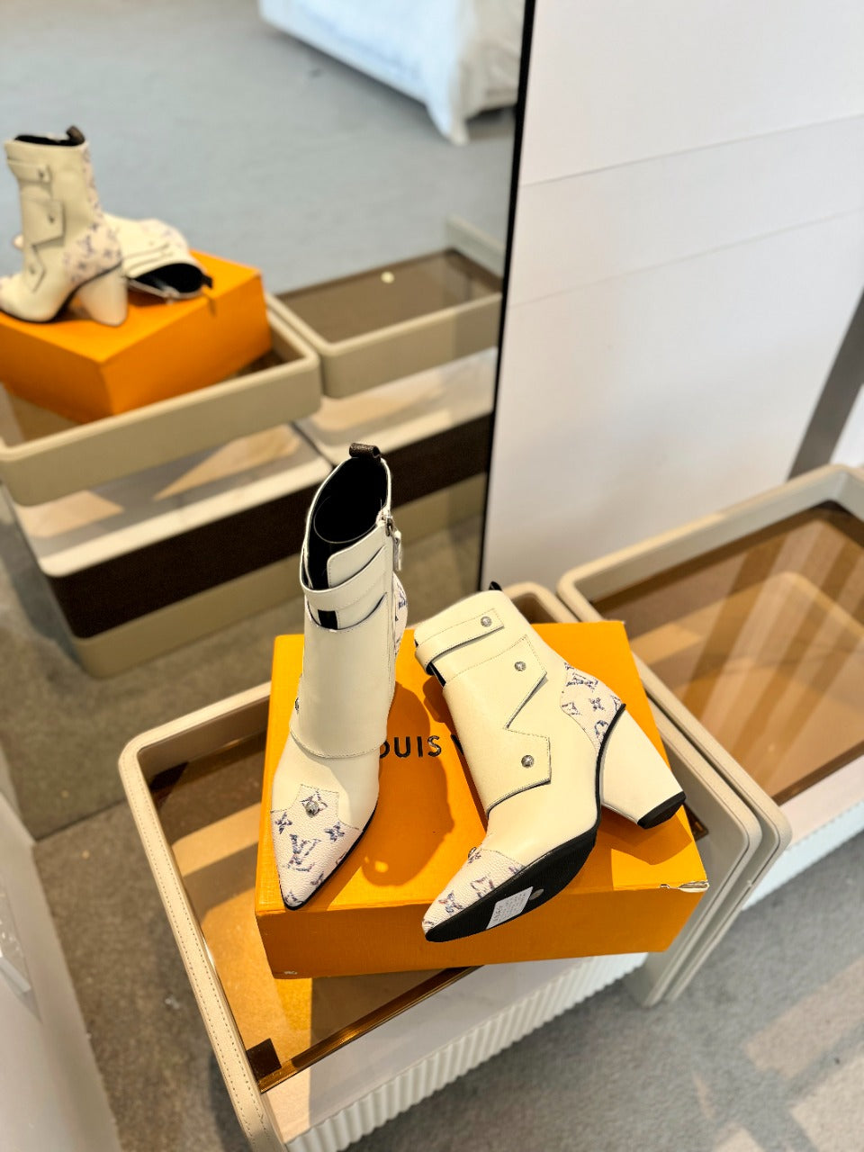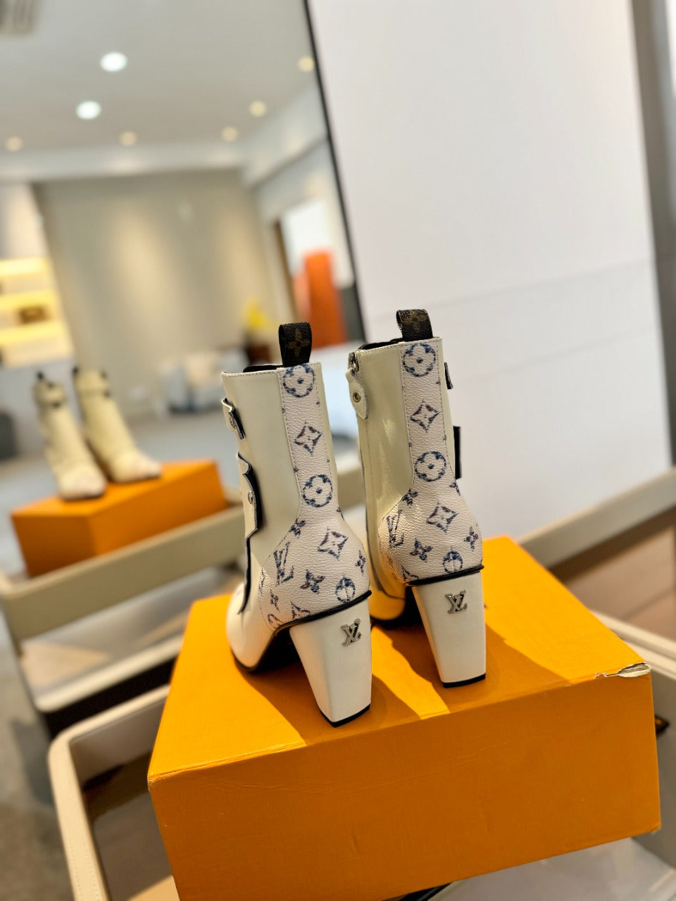 LV Trinity Ankle Boot 75mm White Monogram Calfskin